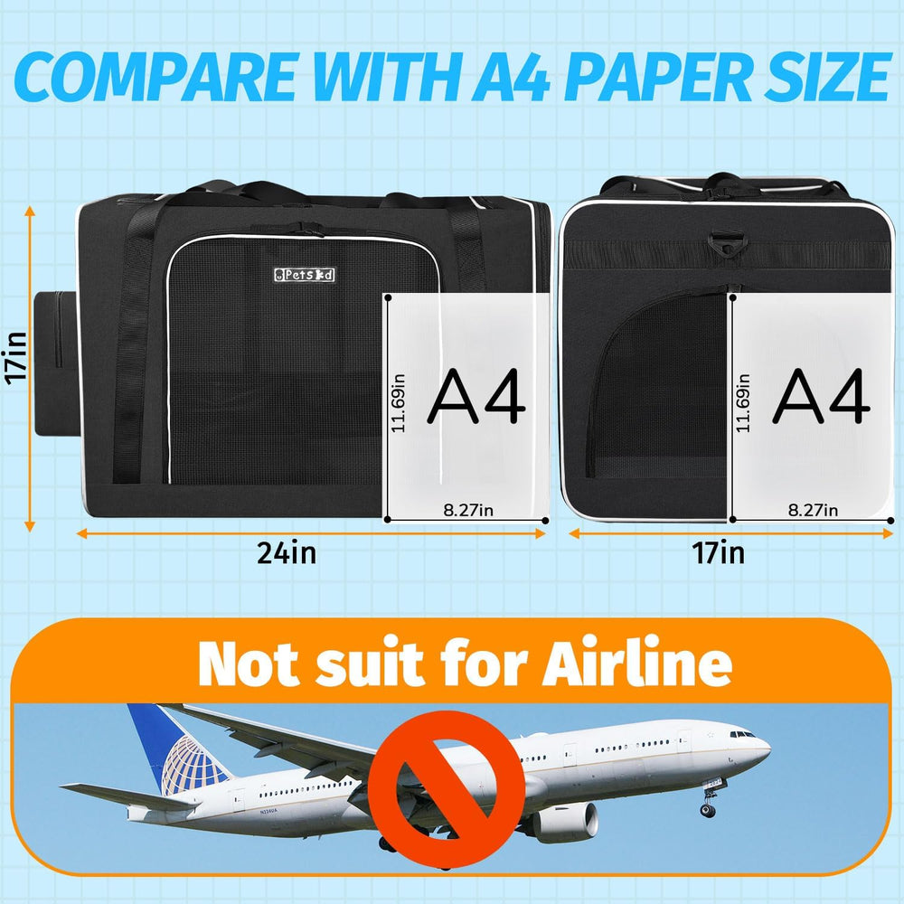 Acerca de este artí ?ESPACIO EXTRA GRANDE?El tamaño del transportador: 24"x17"x adecuado para mascotas de hasta 55 libras. Perfecto para un gato grande o varios gatos pequeños. ?FÁCIL DE TRANSPORTAR?El transportador se puede plegar para un fácil almacenamiento con bolsillos adicionales para guardar cajas de arena y cuencos plegados. ?PARA VIAJES EN COCHE?La mejor experiencia de viaje en coche para ti y tus mascotas. El transportador de viaje para gatos se puede sujetar firmemente en el asiento delantero del coche con anclajes de asiento y correa para mantener a tus mascotas restringidas para mayor seguridad mientras conduce; El producto incluye una caja de arena de viaje y un cuenco de agua plegable para facilitar la alimentación y la eliminación de excrementos durante el viaje. ?DISEÑO SEGURO?Bolso de transporte de gatos suave con diseño estructural mejorado de acero inoxidable y varilla de fibra que hace que nuestras bolsas de transporte de gatos no se deformen ni se caigan y la parte superior no se cola bolsa de transporte de gato grande De preferencia estabilidad. Hebilla de cuerda ajustable incorpor fácil de bloquear el collar. Cremalleras de bloqueo personalizadas evitan que las mascotas abran o agarren la cremallera. ?MATERIAL DURADERO? Nuestro transportador para mascotas está hecho de material de tela de poliéster resistente al a no tóxico y resistente a los araña impermeable y resistente al desgaste; Después de arar productos simila actualizamos el material de malla para prevenir eficazmente que las mascotas rasguñen la malla con sus uñas y eviten que las mascotas se caigan del transportador. ? Ver más detalles del producto Sobre este artí ?ESPACIO EXTRA GRANDE? El tamaño del transportador es de 24"x17"x adecuado para mascotas de hasta 55 lib perfecto para un gato grande o varios gatos pequeños. ?FÁCIL DE TRANSPORTAR?El transportador se puede plegar para un fácil almacenamiento con bolsillos adicionales para guardar cajas de arena plegadas y tazones. ?PARA VIAJES EN COCHE?La mejor experiencia de viaje en coche para ti y tus mascotas. El transportador de viaje para gatos se puede sujetar firmemente al asiento delantero del coche con anclajes de asiento y correa para mantener a tus mascotas sujetas para mayor seguridad mientras conduce. El producto incluye una caja de arena de viaje y un recipiente de agua plegable para facilitar la alimentación y la eliminación de excrementos mientras viajas. ?DISEÑO SEGURO?Bolsa de transporte suave para gatos con diseño estructural mejorado de acero inoxidable y varilla de fibra que evita que el transportador se deforme o se ca proporcionando estabilidad. Hebilla de cuerda ajustable incorpor fácil de bloquear el collar. Cierres de cremallera personalizados evitan que las mascotas abran o agarren la cremallera. ?MATERIAL DURADERO? Nuestro transportador para mascotas está hecho de material de poliéster resistente al a no tóxico y resistente a los araña impermeable y resistente al desgaste. Hemos actualizado el material de malla para evitar que las mascotas rasguen la malla con sus uñas y evitar que se caigan del transportador.