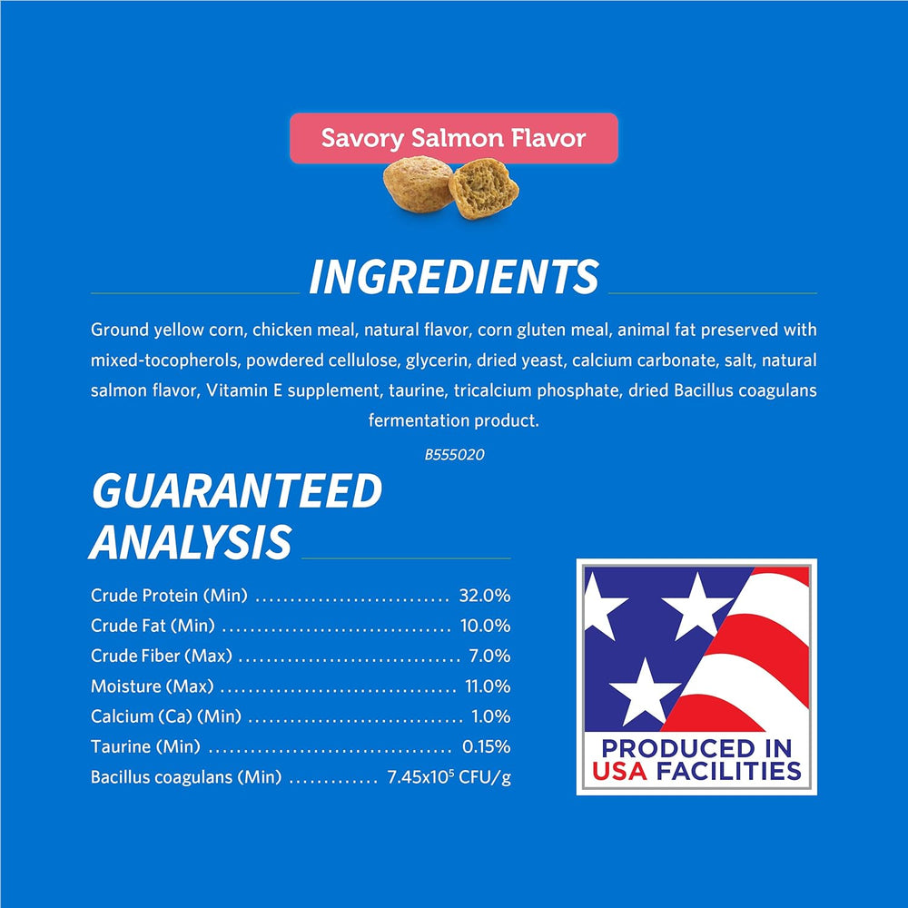 Un (1) 19 onzas. Bolsa - Purina DentaLife Made in USA Facilities - Golosinas dentales para ga sabroso sabor a salmón DentaLife Las golosinas dentales diarias para gatos cuentan con una textura porosa para reducir la acumulación de sarro Científicamente probado para reducir la acumulación de sarro Purina DentaLife golosinas para gatos hechas con ingredientes naturales saludables con vitami minerales y nutrientes añadidos y sin sabores ni colores artificiales Contiene calcio y taurina añadi además de probióticos añadidos para que los gatos apoyen la salud digestiva