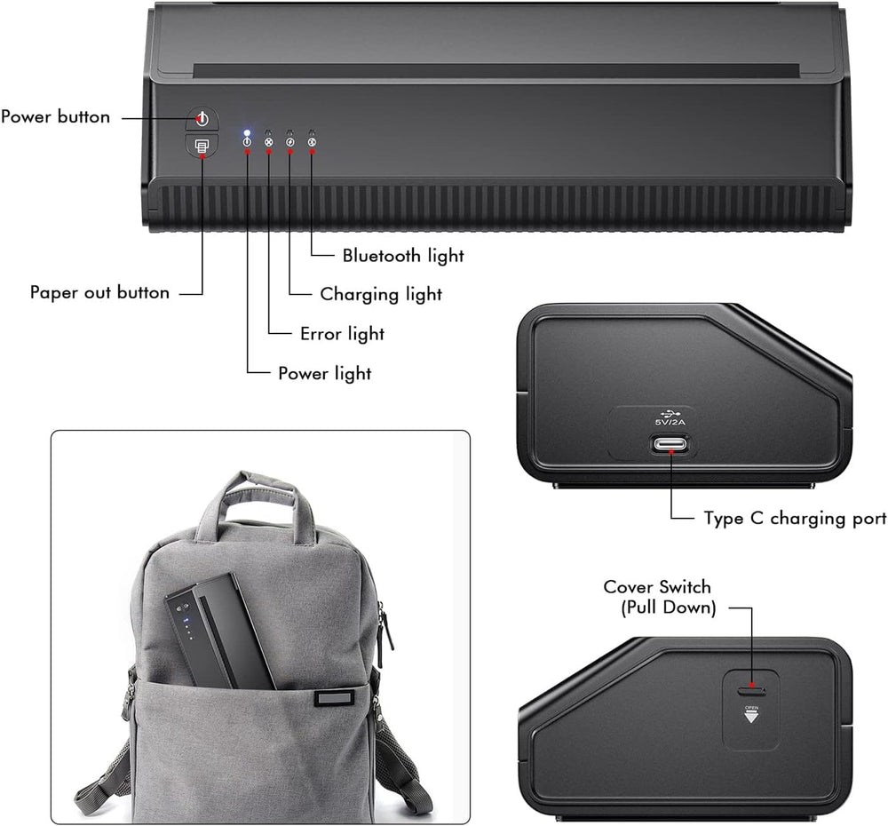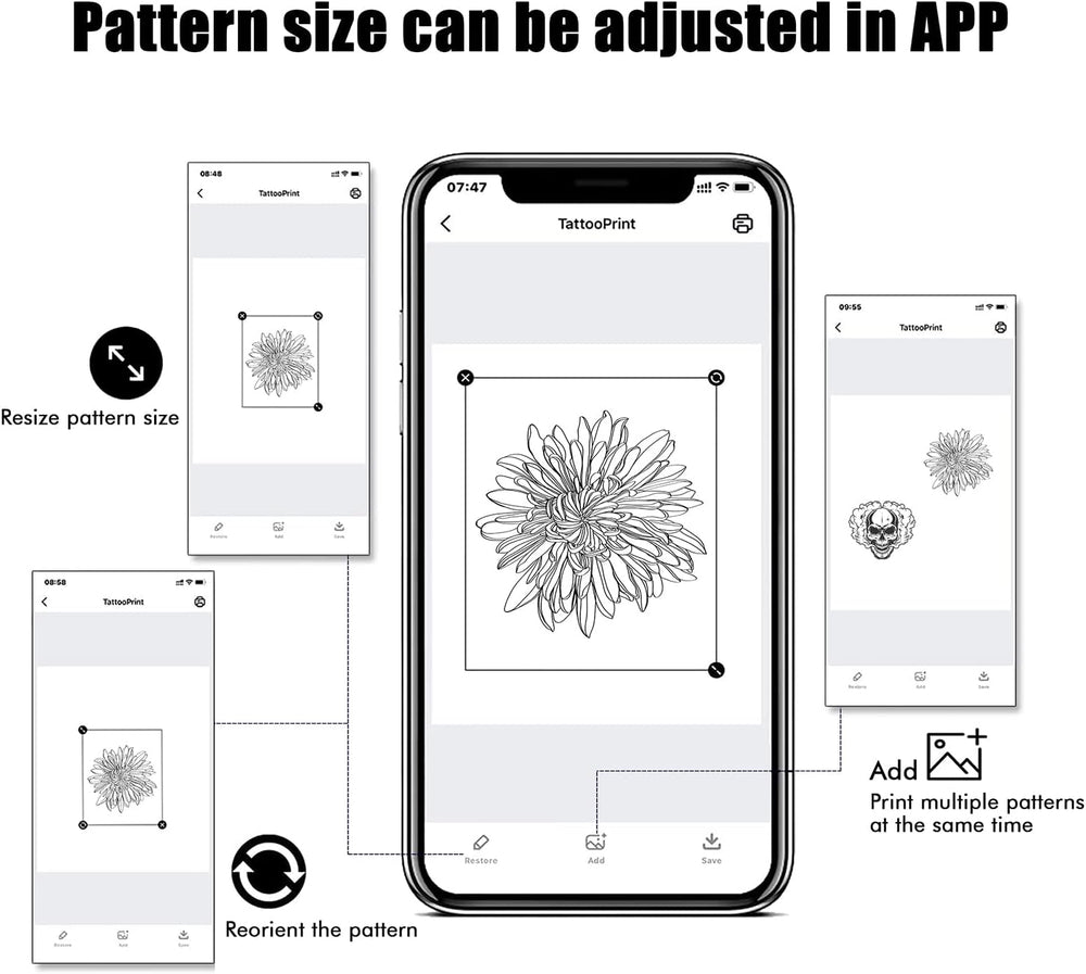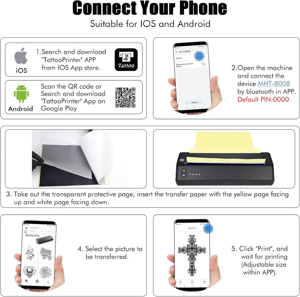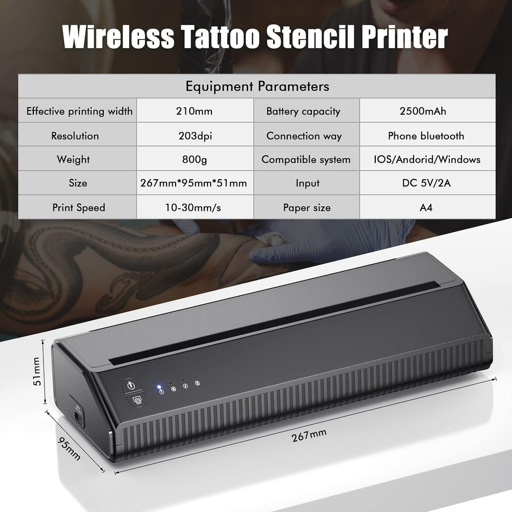 LIUMATE Impresora de tatuajes inalámbrica para tatuajes, impresora térmica Bluetooth, máquina de plantillas de transferencia de tatuajes, copiadora térmica para tatuajes con 10 piezas de papel de