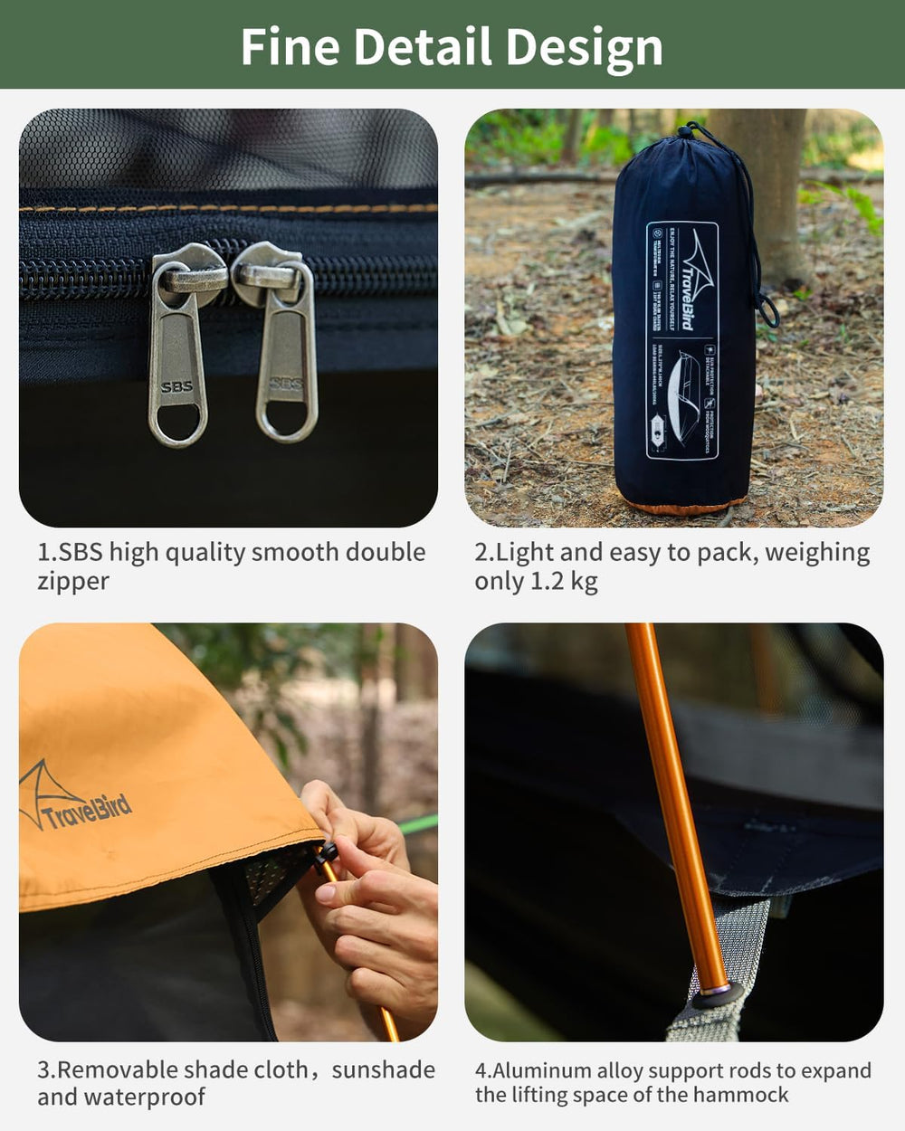 Hamaca de Camping con Mosquitera y Sombra, 4 en 1, Modelo X