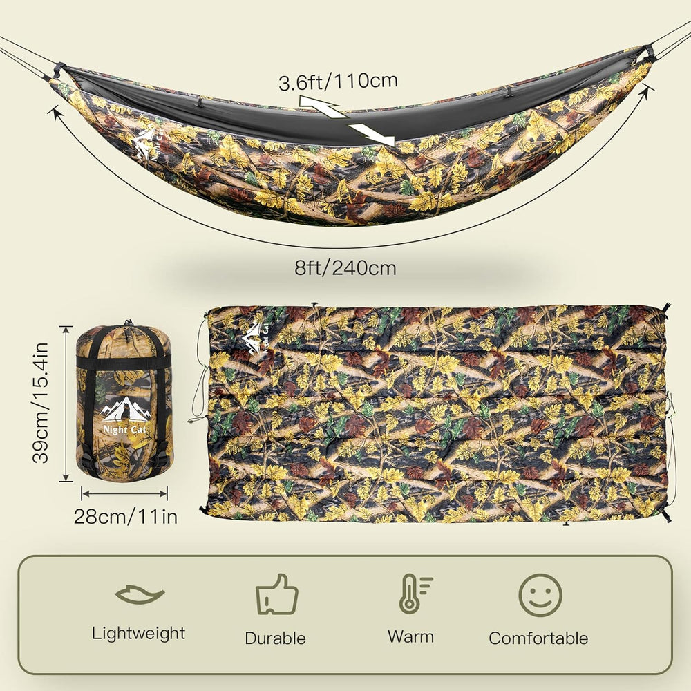 Hamaca de Noche Cat, aislante, ligero, 4 estaciones, 8x3.6ft