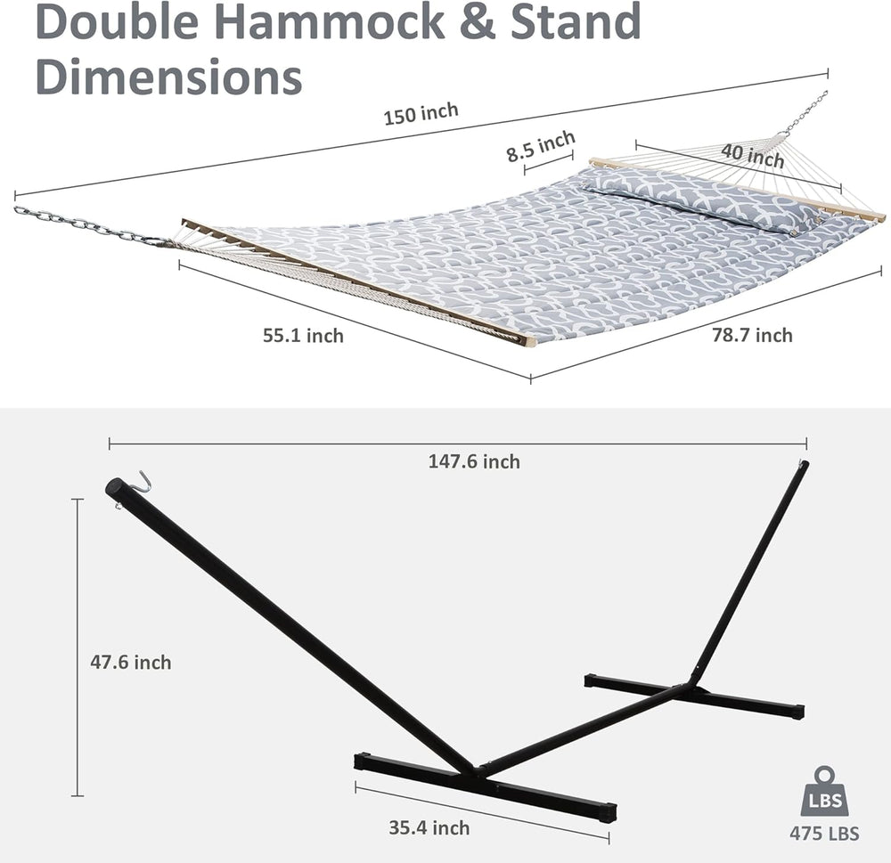 Hamaca Doble Extra Grande SUNCREAT con Soporte y Almohada Extra