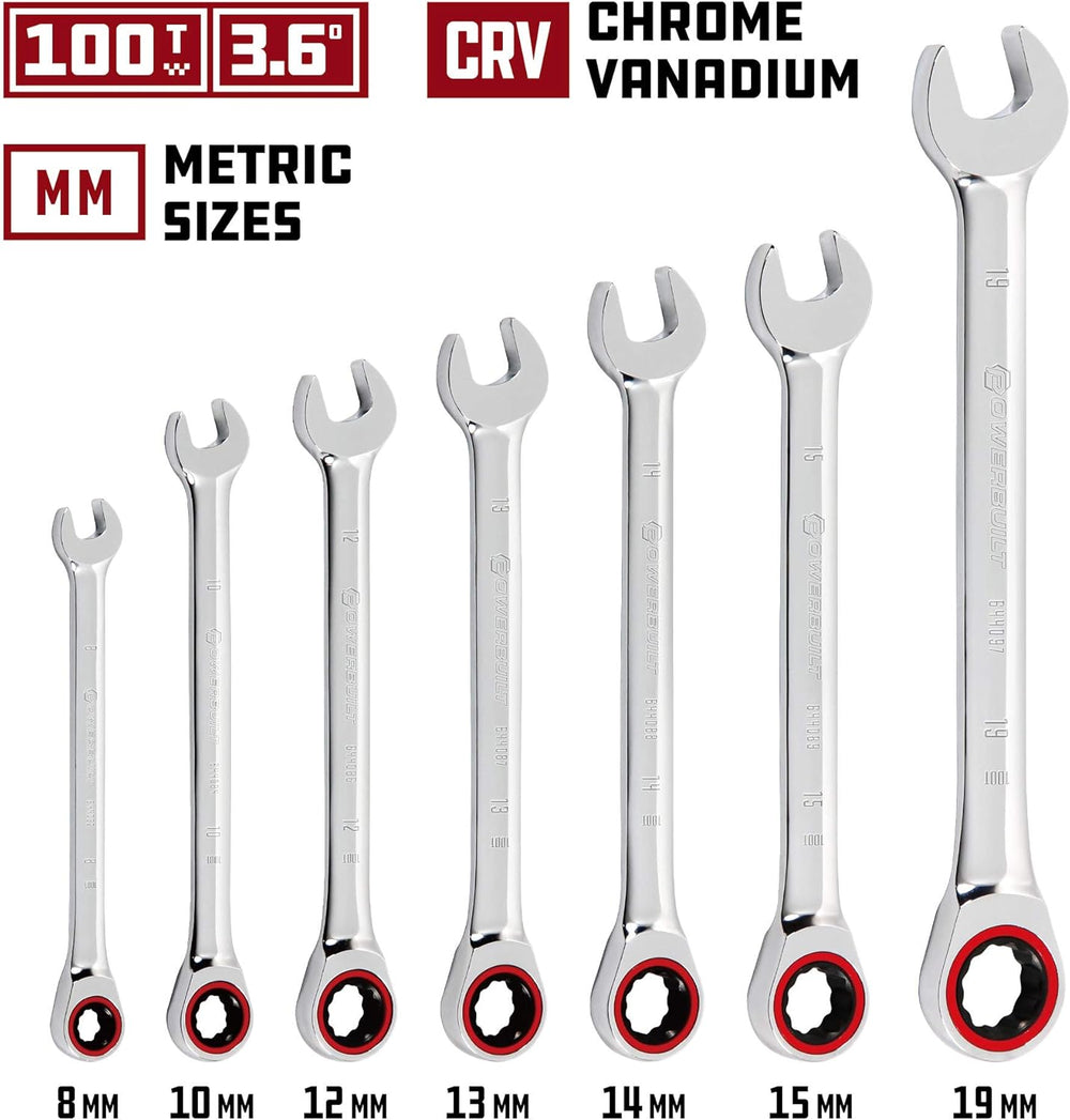 Juego de 7 Llaves de Carraca Métricas Powerbuilt 100 Dientes