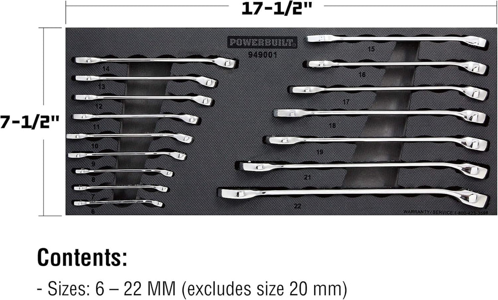 Juego de llaves combinadas métrico Powerbuilt 16 piezas 949001
