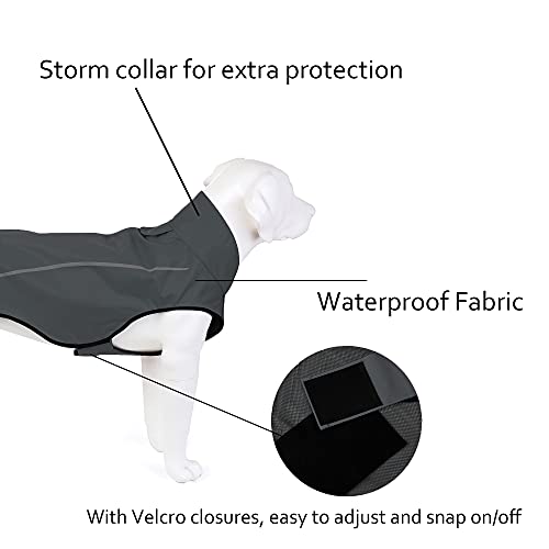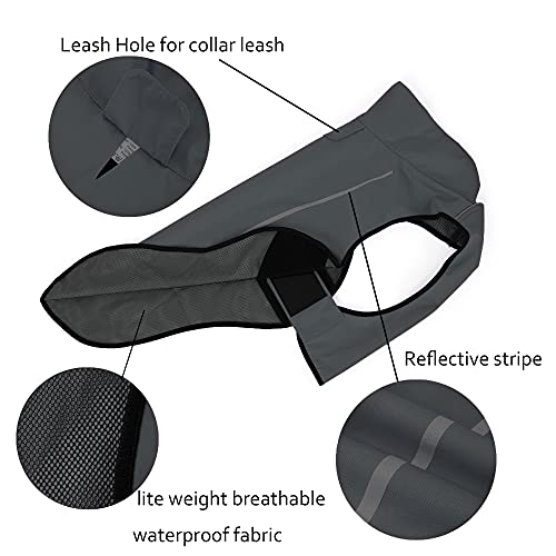Mile High Life Chubasquero para perro, ropa ajustable a prueba de agua, chaqueta ligera con tira reflectante, cierre fácil de poner, gris oscuro, XXS