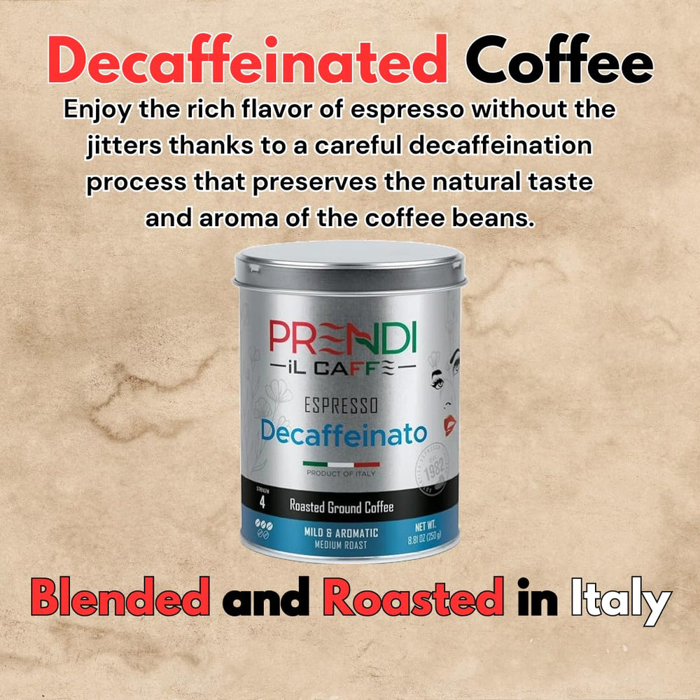 Acerca de este artí [ Café descafeinado ] Disfruta del rico sabor del espresso sin los nervios gracias a un cuidadoso proceso de descafeinización que preserva el sabor y aroma natural de los granos de café. [ Café Descafeinado Molido ] Convenientemente pre-molido para una preparación rápida y fá ideal para usar en máquinas de espre cafeteras moka o incluso prensas francesas. [ Café Descafeinado Tostado Oscuro ] Disfruta de un perfil de sabor audaz y satisfactorio con un final suave y bajo en aci perfecto para aquellos que prefieren un sabor de café más fuerte. [ Café Orgánico Descafeinado Molido ] Elaborado con granos 100 Arábica cultivados utilizando prácticas orgáni garantizando una experiencia de café pura y libre de culpa. [ Mezclado y Tostado en Italia ] Experimenta el verdadero sabor del espresso italiano con esta mezcla expertamente elabor tostada y empaquetada directamente en Italia. ? Ver más detalles del producto Experimenta el rico y auténtico sabor del espresso italiano sin cafeína con el café molido descafeinado PRENDI Espresso. Esta mezcla expertamente elaborada y tostada en un café de tueste oscuro ofrece un perfil de sabor pleto con un final suave y bajo en ác perfecto para aquellos que aman el sabor del espresso pero desean limitar su consumo de cafeína.