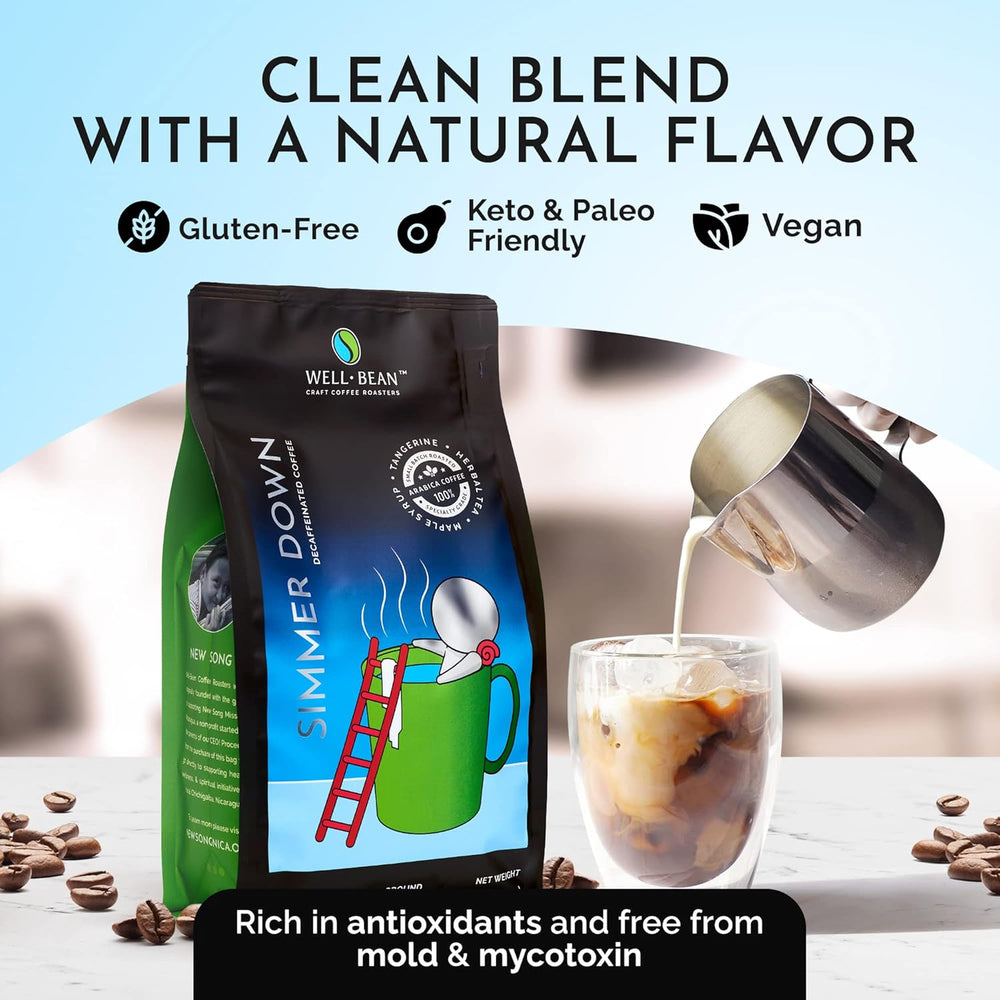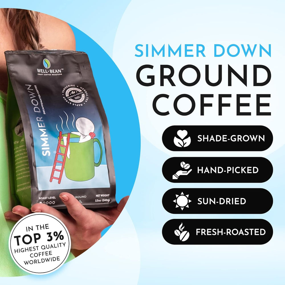 Café Molido Simmer Down - Well-Bean, Descafeinado Suizo 12 oz
