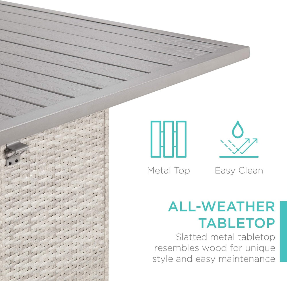 Best Choice Products Juego de mesa de mimbre de 5 piezas para patio, piscina, patio trasero con abridor de botellas integrado, estante de almacenamiento oculto, mesa de metal, 4 taburetes, color gris está agotado y se enviará tan pronto como vuelva a estar disponible.