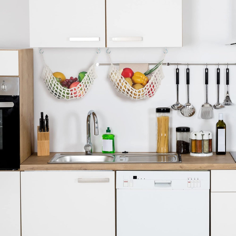 Hamaca de Frutas Macrame, 2 Pcs, 11.8x20 con 4 Ganchos