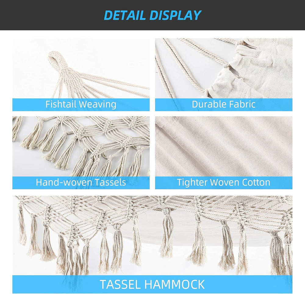 Hamaca interior doble con borlas, portátil, hasta 500 lbs.