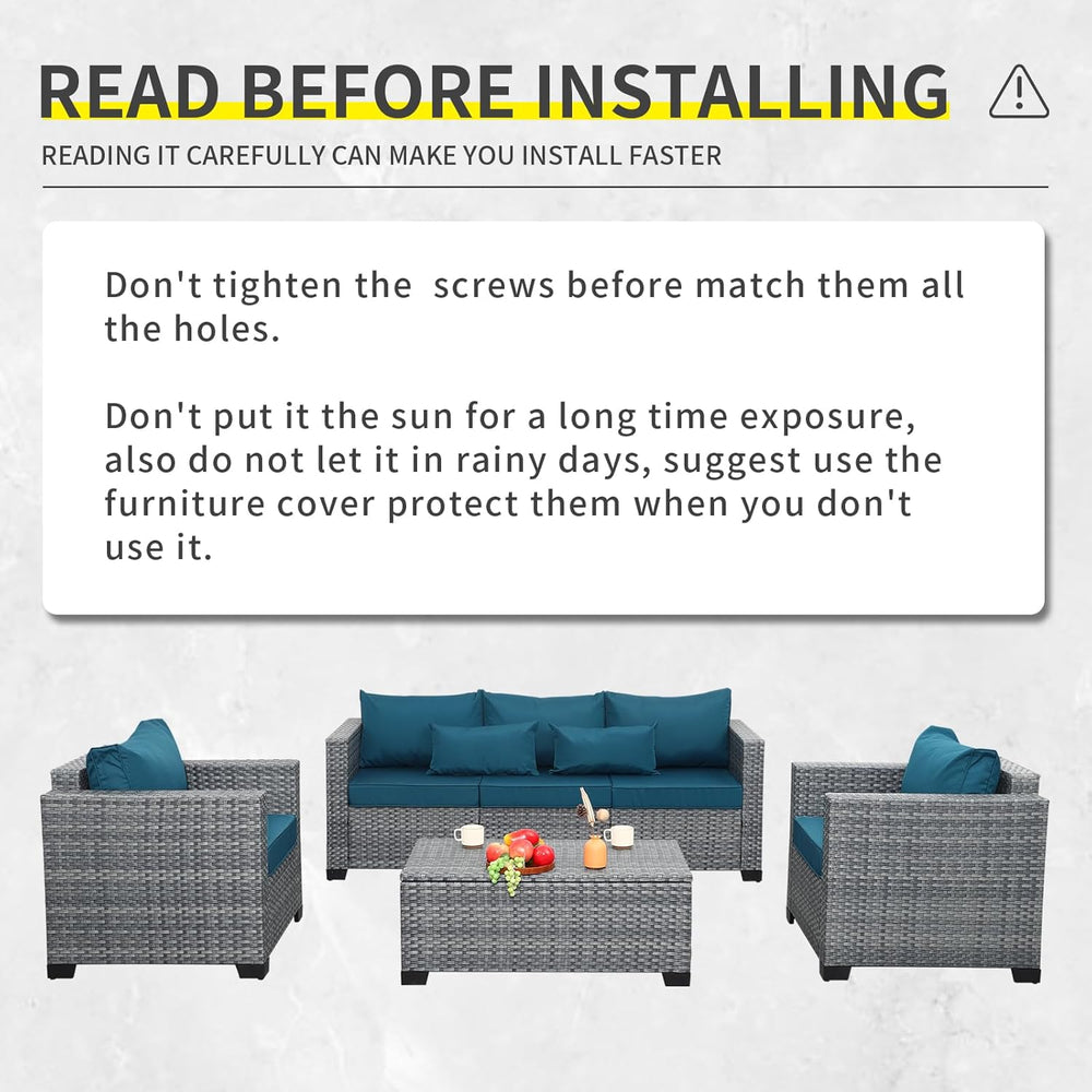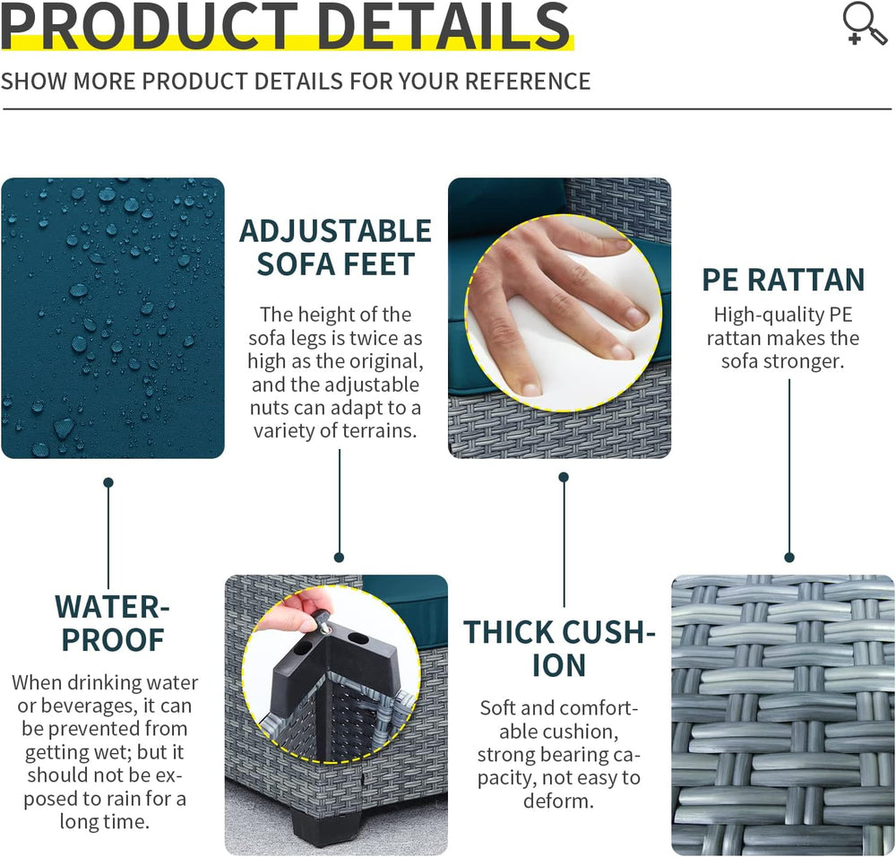 Lviden Juego de muebles de mimbre para patio de 4 piezas, juego de conversación al aire libre, sofá seccional de ratán de polietileno con mesa de almacenamiento y cojines azul pavo real está agotado y se enviará tan pronto como vuelva a estar disponible.