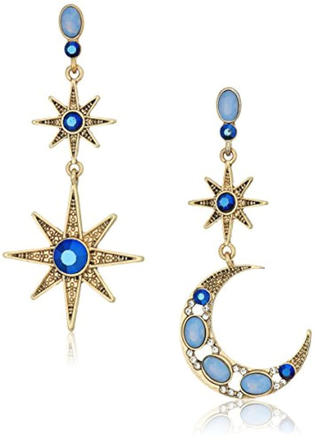 Aretes colgantes diseño de luna y estrella, Betsey Johnson