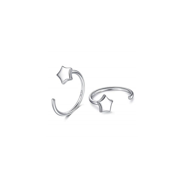 Pendientes de aro con una estrella en la parte superior. Pueden llevarse tanto en el primer como en el segundo agujero de la oreja, así como en el cartílago. Estos pendientes de estilo minimalista son perfectos para llevar casualmente pero también en ocasiones especiales. la plata de ley chapada en platino hipoalergénico, el grosor del chapado es el doble del estándar de la industria, sin níquel y sin plomo, seguro para todos incluso para aquellos con piel sensible. Embalaje: cada pieza de nuestra joyería viene completa con un paño de limpieza y una delicada caja de regalo y lista para regalar. Regalo ideal: en caso de que estés cansado de buscar algo interesante para regalos, nuestras joyas minimalistas serán una buena elección. Son ideales para cualquier ocasión de regalo, fiestas, bodas, ceremonias, graduaciones, citas y vocación. Un delicado y único pendiente de aro de estrella es un regalo perfecto para ti o para alguien que amas.