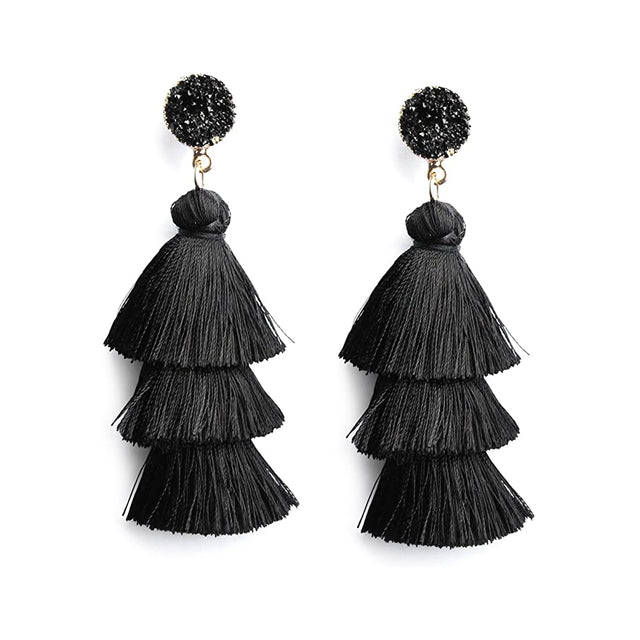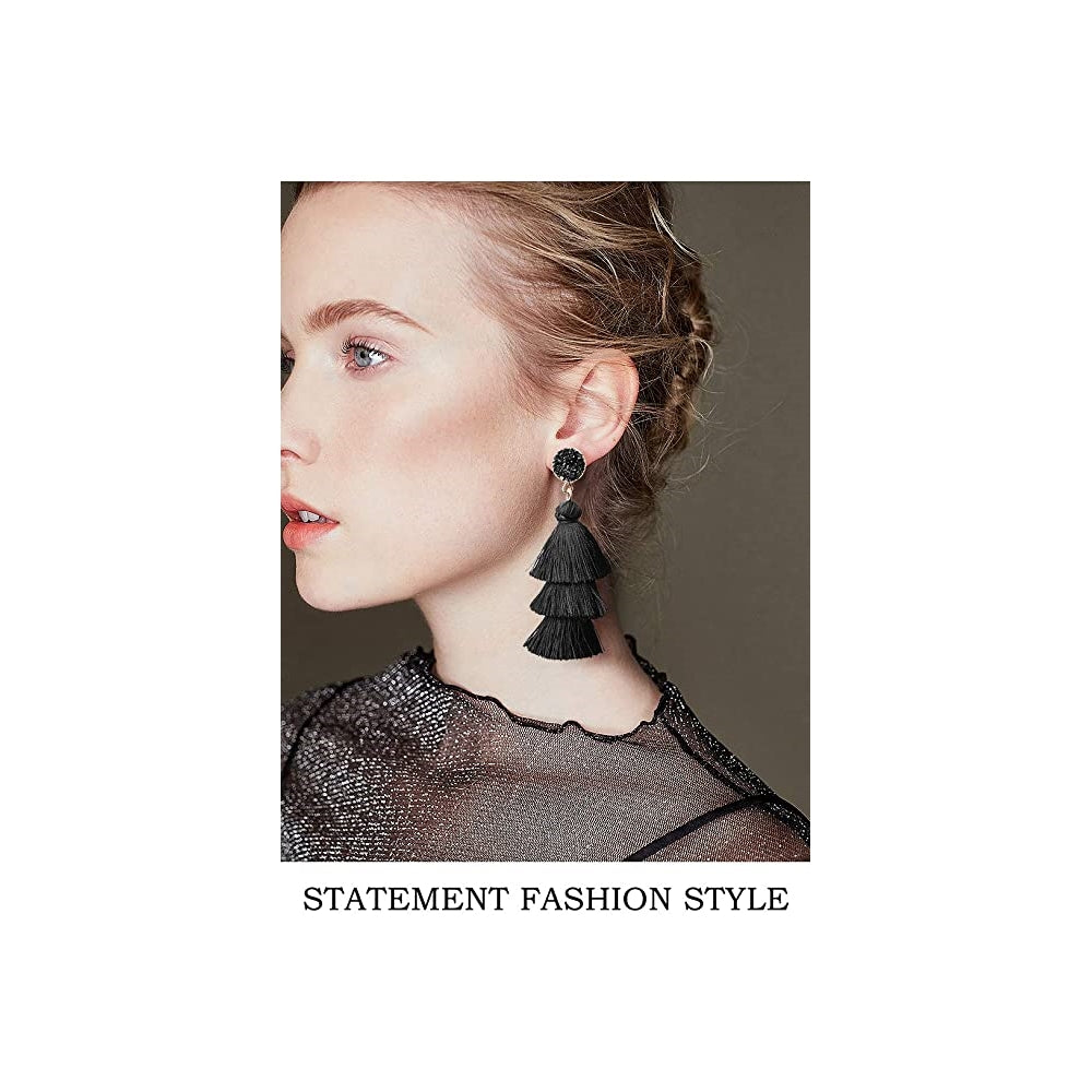 Estos divertidos aretes colgantes con tachuelas de piedras preciosas naturales Druzy y colgantes de borla de hilo de 3 capas en una forma voluminosa inspirada en una falda hula Pesa solo alrededor de 0.4 oz por un par de aretes, es liviano y cómodo para usar Estos pendientes de borla de moda pertenecen al estilo bohemio, adecuados para el uso diario, bodas, citas, bailes o cualquier ocasión en la que quieras ser más encantador y recibir más cumplidos. Los mejores regalos para cumpleaños, aniversarios, día de San Valentín, día de la madre o cualquier otro festival, pendientes colgantes muy populares para mujeres adolescentes.