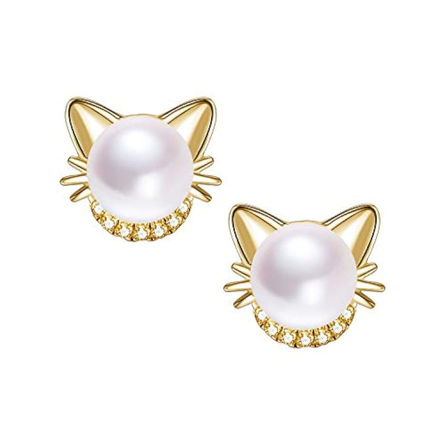 Pendientes de gato chapados en oro de plata de ley con perla está agotado y se enviará tan pronto como vuelva a estar disponible.