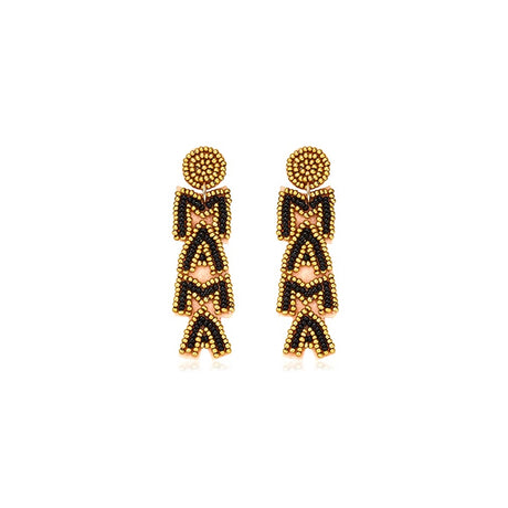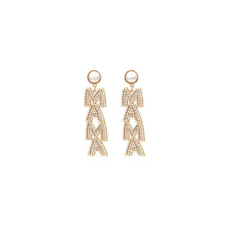Aretes largos de perlas con diseño de letra de mamá