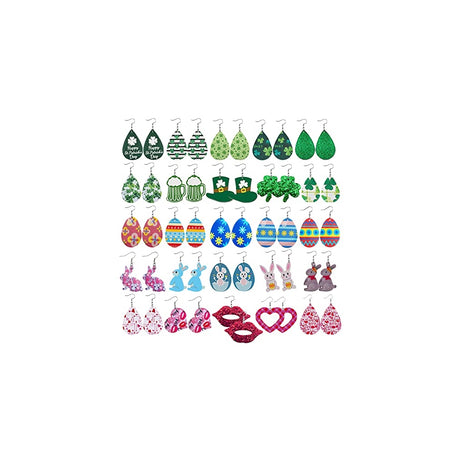 Aretes de piel sintética de trébol sombrero verde 25 pares