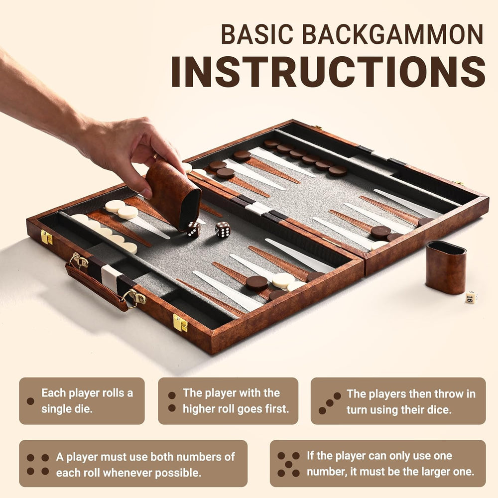 Juego de Mesa Backgammon Ropoda 15 con Guía de Estrategia