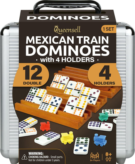 Juego de dominó mexicano Queensell Doble 12 con 4 soportes