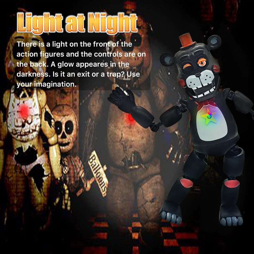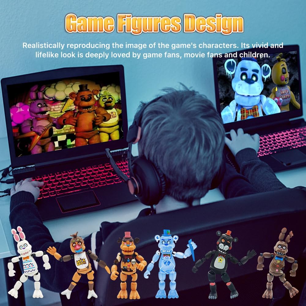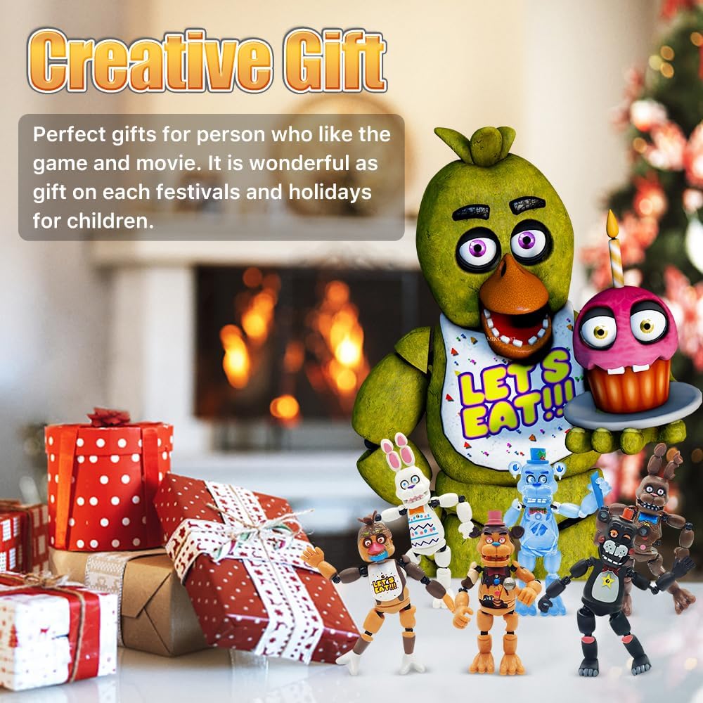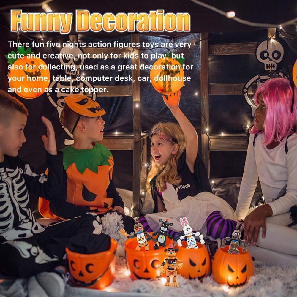 TAMAÑO COLECCIONABLE: Estos juguetes para decorar pasteles miden aproximadamente 13.5-15.5 cm 5.3-6.1 pulga que es tan alto un bolígrafo. Pesa 0,42 kg 0,92 lb en to con un peso promedio de solo 0,07 kg 0,15 lb por pieza. Son cómodos de soste no son gigantes ni voluminosos. Los juguetes de calidad atraen la atención de los niños. Pueden jugar en cualquier lu el s la c el escritorio o el césped al aire libre. ARTICULACIONES MÓVILES Y LUZ: Este conjunto de figuras de acción de Five Nights se one de seis personajes del juego. Tienen rotación de 360° en las articulaciones del cue homb co caderas y rodil lo que les permite adoptar diferentes posturas libre y fácilmente. Algunas extremidades de los juguetes pueden desprenderse debido al transporte a larga distancia y al método de ensamblaje. Es un fenómeno nor puedes volver a armarlas tú mismo. El cuerpo de los juguetes coleccionables de Five Nights tiene una batería incorporada y una luz en la parte delantera del juguete. (Nota: ¡La batería no se puede reempl!) MATERIAL DE PVC DE PRIMERA CALIDAD: Las seis "Figuras de Acción de Five Nights" están hechas con material de PVC de alta cali lo que lo hace seguro para que los niños jueguen y no se deforme fácilmente. Es un material resistente. Si el niño no lo sostiene firmeme estará bien. Es natural que los niños jueguen con juguetes. Las seis figuras de acción son diversas e interesantes. UN REGALO CREATIVO: Regalos perfectos para tus hi amigos y familiares a quienes les gustan estos personajes de juegos. Estos juguetes de la serie de videojuegos pueden ser utilizados regalo de cumplea regalo del Día del N regalo de Navi regalo de Hallow regalo de Pascua y todos los demás regalos memorables. ¡Ordénalo de inmediato y dáselo a tus seres queridos! PERFECTO PARA VARIAS OCASIONES: Estos divertidos juguetes de Figuras de Acción de Five Nights son muy lindos y creati no solo para que los niños jueg sino también para coleccio utilizados una gran decoración para tu ho m escritorio de la utad a casa de muñecas e incluso un adorno para pasteles. Un regalo perfecto para niños y niñas obsesionados con la colección de personajes. TAMAÑO COLECCIONABLE: Estos juguetes para pasteles tienen una altura de aproximadamente 13.5-15.5 c 5.3-6.1 pulga que es tan alto un bolígrafo. Pesa 0,42 k 0,92 lb en to con un promedio de solo 0,07 k 0,15 lb cada uno. Son cómodos de soste no son gigantes ni voluminosos. Los juguetes de calidad atraen la atención de los niños. Se pueden jugar en cualquier lugar el s la c el escritorio o el césped al aire libre. ARTICULACIONES MÓVILES Y LUZ: Este conjunto de figuras de acción de Five Nights consta de seis personajes de juego. Tienen rotación de 360° en las articulaciones del cue homb co caderas y rodil lo que les permite adoptar diferentes posturas libre y fácilmente. Algunas extremidades de los juguetes pueden separarse debido al transporte a larga distancia y al método de ensamblaje. Es un fenómeno nor puede volver a unirlo usted mismo. El cuerpo del conjunto de juguetes coleccionables de Five Nights tiene una batería incorporada y una luz en la parte delantera del juguete. (Nota: ¡La batería no se puede reempl!) MATERIAL DE PVC DE PRIMERA CALIDAD: Las seis "Figuras de Acción de Five Nights" están hechas con material de PVC de alta cali lo que lo hace seguro para que los niños jueguen y no sea fácil de deformar. Es un material resistente. Si el niño no lo sostiene firmeme estará bien. Es natural que los niños jueguen con juguetes. Las seis figuras de acción son diversas e interesantes. UN REGALO CREATIVO: Regalos perfectos para tus hi amigos y familiares a quienes les gustan estos personajes de juegos. Estos juguetes de la serie de videojuegos pueden usarse regalo de cumplea regalo del Día del N regalo de Navi regalo de Hallow regalo de Pascua y todos los demás días festivos memorables. Ordénalo de un y dáselo a tus seres queridos. PERFECTO PARA VARIAS OCASIONES: Estos divertidos juguetes de Figuras de Acción de Five Nights son muy lindos y creati no solo para que los niños jueg sino también para coleccio utilizados una gran decoración para tu ho m escritorio de utad auto. , casa de muñecas e incluso adorno para pasteles. Regalo perfecto para niños y niñas obsesionados con la colección de personajes.