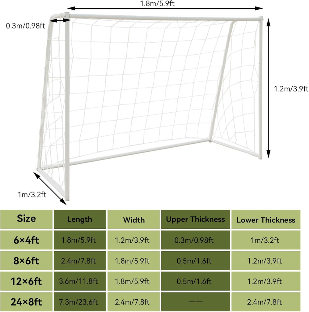 Talla 8X6FT Color Blanco Frdhee Material Algodón Deporte Fútbol Sobre este artículo Material: red de portería de fútbol hecha de algodón de cali durabilidad. Múltiples tamaños: 6 x 4 pies; 8 x 6 pies; 12 x 6 pies; 24 x 8 p esta red de fútbol es una gran portería de fútbol para el patio tras o una gran portería de fútbol para niños que inspira a los jóvenes atletas a practicar y anotar. Instalación rápida: Instalar y quitar la red de fútbol es rápido y fácil. Podrás volver a patear en poco tiempo. Portátil: se pliega hasta una pequeña fracción para facilitar el transporte y almacenamiento. La portería de fútbol pequeña también es del tamaño perfecto para el maletero de tu automóvil pequeño. de la red de portería de fútbol: Adecuado para goles con una forma de 3 ángulos en el lateral o una forma trapezoidal en el lateral.