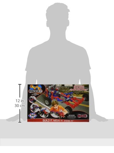 *** Características *** ¡ZOOB RacerZ Car Designer te permite construir tres autos al mismo tiempo para competir entre ellos, o construir una plataforma de 12 ruedas! El conjunto incluye 76 piezas ZOOB, 12 ruedas que funcionan como engranajes y 3 guías de instrucciones para construir un Stinger supersónico, un Gear Getter y más. ZOOB no es como cualquier otro conjunto de construcción: las piezas incluyen engranajes, ejes y juntas que se rompen, hacen clic y se juntan. Con piezas giratorias, giratorias y extensibles, puedes diseñar un juguete para jugar, en lugar de simplemente construir algo para mirar. ¡Crea monstruos, o vehículos, o monstruos que se convierten en vehículos! ¡ZOOBMobile pone ruedas en tus creaciones para hacer que tu ZOOB se vuelva ZOOM! Recomendado para niños de 6 años de edad y mayores.