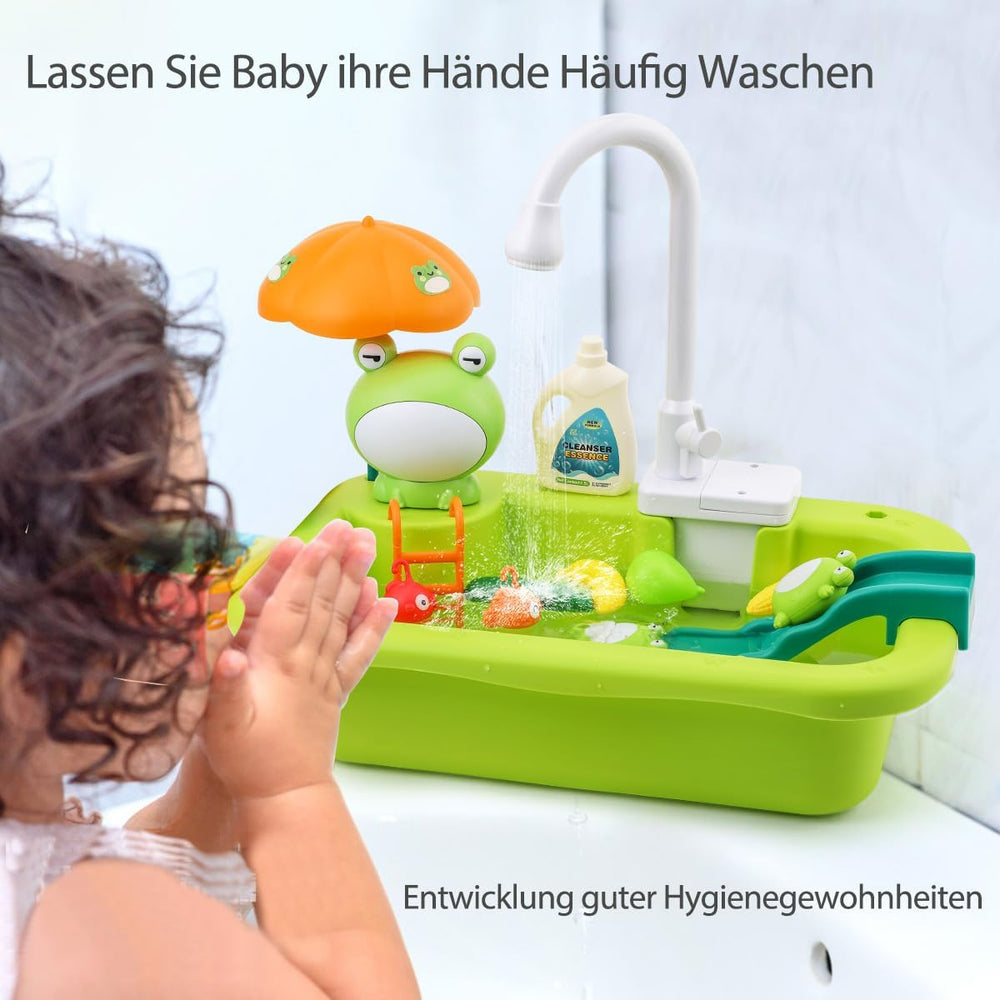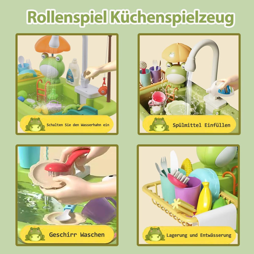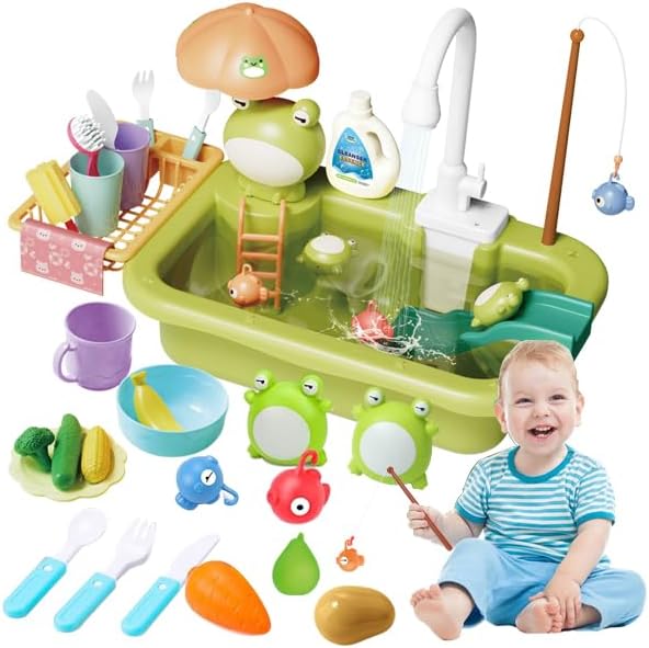 ?Juguete de Fregadero de Cocina 2 en 1?Nuestro set de cocina de simulación viene equipado con un grifo eléctr alimentos de jugu juguetes flotan accesorios de cocina de juguete y juego de pesca. Los niños pueden disfrutar del juego de cocina mientras simulan la pesca r mejorando la coordinación mano- la habilidad de equilibrio corporal y la creatividad. ?Grifo de Agua Corriente Realista?Este fregadero de cocina de juguete cuenta con un Sistema de Circulación de Agua Automát el nuevo grifo eléctrico mejorado permitirá que el agua fluya de forma real y vuelva al juguete de fregad lo que ayuda a ahorrar agua. ¡Diviértete mucho para los niños! ?Juguete de Cocina de Rol de Simulación?El set de fregadero de cocina incluye cepil detergentes de ju ta juegos de cuchillo y tenedor de plástico. Los niños pueden fingir hacer las tareas del hogar o sus padres. Los accesorios variados están disponibles para que los niños jueguen a imi fomentando el deseo de imitación de un niño y ayudándolos a explorar el mundo. ?Juguete de Fregadero Educativo?Los accesorios de cocina coloridos pueden mejorar el reconocimiento de colores del bebé y las habilidades de identificación de utensilios de cocina. A través del juego de roles divertido se ejercitan las habilidades lingüísticas y sociales. Desarrolla buenos hábitos de lavarse las manos con frecuencia y conservar a mejora las habilidades de organización y almacenamiento de objetos de los niños. ?Mejor Regalo para Niños?Diseñado para que los niños jueguen a la cocina y a pes este set de fregadero de gran capacidad puede dar a los niños un amplio espacio de juego. Es un regalo perfecto para preescolares de entre 3 y 6 a fomentando siempre lavarse las manos para mantenerse saludables y ayudar a aprender habilidades para la vida y ahorrar agua. ¡A los niños les encantará! Información del producto Dimensiones del producto: 14.57 x 9.06 x 5.51 pulgadas Peso del artí : 10.6 onzas País de origen: China CY2276ZX Número de modelo del artí : WD-R43 Edad r endada por el fabricante: 36 meses - 8 años Ranking de los más vendidos number 1,133,494 en Juguetes y Juegos (Ver los 100 mejores en Juguetes y Juegos number 2,648 en Juegos de Cocina de Juguete Fabricante: MERTNK del producto: Para obtener información sobre l de este produ hag Descripción del producto: Fregadero de juguete con agua corrie juguetes de cocina con ida de jugu juguetes de pesca en piscina flotante para jugar con a juguete lavavajillas de rol para niños y niñas (verde)