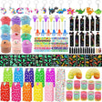 Fun DIY Slime Party Favors Ki cans of unicorn slime in 12 different colors goody bags for kids birthday and Classroom Prizes.it es with ice cream molds,lollipop molds for cakes,ice cream,mermaids,candies,cookies and some chocolate charms,rich colors and accessories bring enough fun and creativity,it can be rolled and bent as you like,pull it apart and the fluffy slime will be seamlessly reconnected.High-end packaging and sealed container,your kids will love it very much,This DIY kit provides hours of fun.Slime play promotes childre practical skills,imagination and creativity.