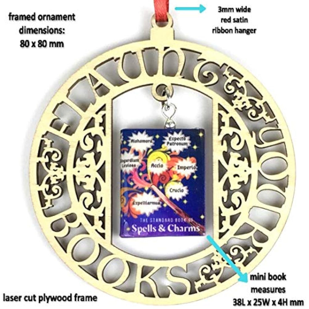 ¿Adornos de libros de texto para tu árbol o pared? Por qué no? Esculpido en arcilla, el adorno rinde homenaje a una materia básica (impartida por el profesor Flitwick) que se requiere de los estudiantes de primero a séptimo año en Hogwarts. El marco cortado con láser está hecho de madera contrachapada de 3 mm de espesor y es resistente y delicado. Un diseño exclusivo de Book Beads, The Standard Book of Spells and Charms es la clase que enseña técnicas para agregar o cambiar ciertas propiedades a un objeto o criatura (un amuleto). La intensidad de los colores de este adorno enmarcado seguramente surgirá del árbol de Navidad y agregará vitalidad a sus ramas. HECHO A MANO EN LOS ESTADOS UNIDOS: cuando invierte en Book Beads, comienza una colección con un artista que es producto de generaciones de amantes de los libros y artesanos dedicados a producir los mejores libros en miniatura esculpidos para usted. Así que adelante. Haz alarde de tus libros. Las ESPECIFICACIONES DE PRODUCTO DETALLADAS se pueden encontrar a continuación.