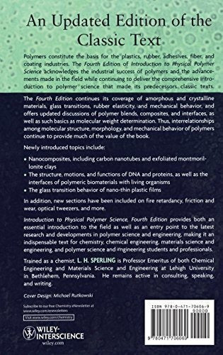 Los polímeros constituyen la base de las industrias de plásticos, caucho, adhesivos, fibras y recubrimientos. La Cuarta Edición de Introducción a la Ciencia de los Polímeros Físicos reconoce el éxito industrial de los polímeros y los avances realizados en el campo mientras continúa ofreciendo la introducción integral a la ciencia de los polímeros que convirtió a sus predecesores en textos clásicos. La Cuarta Edición continúa su cobertura de materiales amorfos y cristalinos, transiciones de vidrio, elasticidad del caucho y comportamiento mecánico, y ofrece discusiones actualizadas de mezclas de polímeros, compuestos e interfaces, así como conceptos básicos como la determinación del peso molecular. Por lo tanto, las interrelaciones entre la estructura molecular, la morfología y el comportamiento mecánico de los polímeros continúan proporcionando gran parte del valor del libro. Los temas recientemente introducidos incluyen: Nanocompuestos, incluidos nanotubos de carbono y arcillas de montmorillonita exfoliadas La estructura, los movimientos y las funciones del ADN y las proteínas, así como las interfaces de biomateriales poliméricos con organismos vivos. El comportamiento de transición vítrea de las películas de plástico nano delgadas Además, se han incluido nuevas secciones sobre resistencia al fuego, fricción y desgaste, pinzas ópticas y más. Introducción a la Ciencia Física de Polímeros, la Cuarta Edición proporciona una introducción esencial al campo, así como un punto de entrada a las últimas investigaciones y desarrollos en ciencia e ingeniería de polímeros, convirtiéndolo en un texto indispensable para la química, la ingeniería química, la ciencia de los materiales y la ingeniería, y estudiantes y profesionales de la ciencia e ingeniería de polímeros.