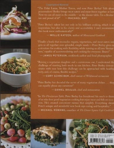 Una compilación de menús simples y elegantes para amantes de la carne y vegetarianos estrictos ofrece una serie de comidas convertibles que se pueden preparar con una proteína vegetal y / o de carne, junto con abundantes platos vegetarianos para complacer incluso a los carnívoros y las comidas con pescado, aves, o carne con amplios lados de vegetales que pueden servir como platos principales.