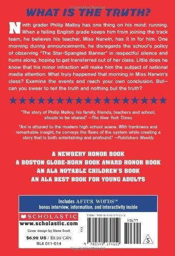 Este Newbery Honor Book del aclamado autor Avi se une a la línea Scholastic Gold, que presenta novelas premiadas y queridas. ¡Incluye contenido extra exclusivo! En este examen de libertad, patriotismo y respeto que invita a la reflexión, el alumno de noveno grado Philip Malloy no puede unirse al equipo de atletismo debido a sus malas calificaciones en la clase de inglés. Philip, convencido de que no le agrada a la maestra, elabora un plan para que lo transfieran de su clase. Rompiendo la política de silencio de la escuela durante el himno nacional, tararea y termina en una crisis en el centro de la atención de la nación.
