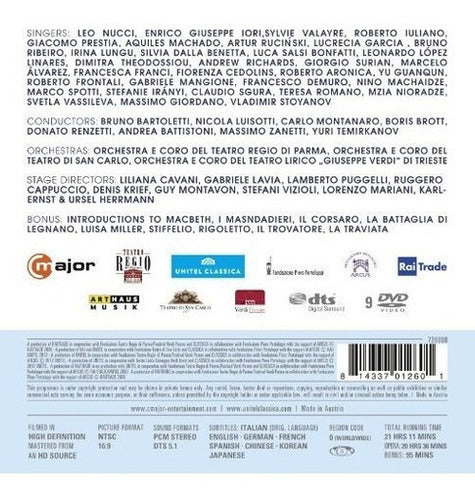 *** Características *** -Actores: Alvarez , Mzia , Benetta , Iuliano , Machado Directores: __ Formato: múltiples formatos, conjunto de cajas, clásico, color, NTSC, pantalla panorámica Idioma: alemán Subtítulos: inglés, italiano, alemán, francés, español, coreano, japonés Relación de aspecto: 1.78: 1 Número de discos: 9 Calificación: NR No clasificado Estudio: C Major Entertainment Fecha de lanzamiento del DVD: 29 de octubre de 2013 Tiempo de ejecución: 1271 minutos.