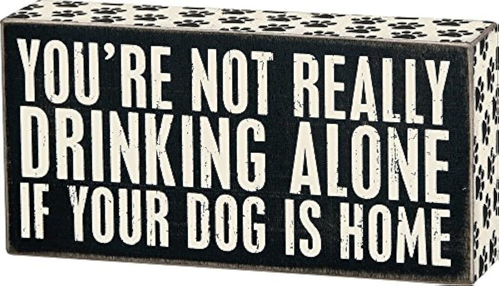 *** Características *** 8 "por 4" 1.75 pulgadas profundo Aspecto rústico'No eres realmente beber por sí sola si su perro es Home " Un clásico letrero de caja de madera en blanco y negro con un sentimiento angustiado de que no estás realmente bebiendo solo si tu perro está en casa con adornos estampados con estampado de pata. Fácil de colgar o puede ser independiente. Mide 8 x 4 pulgadas. COMPRE CUIDADOSAMENTE SOLO EN o en socios de confianza de para garantizar los regalos y la decoración auténticos de Primitives By Kathy con impresiones, costuras y telas de primera calidad. En 1997, Kathy hizo su primera caja de velas primitiva a mano, cuidando cada detalle desde los bordes lijados hasta el tipo de cinta atada a los mangos de alambre, cada uno fue un trabajo de pasión. A medida que Primitives by Kathy crece, la pañía trabaja para retribuir, enzando con una relación inicial con Goodwill Services y expandiéndose a varias causas benéficas más mantenidas tanto por la pañía o por aquellas que la pañía apoya en nombre de sus empleados. Están constantemente inspirados por las personas, los lugares y las cosas que nos rodean. Kathy viaja por el mundo para inspirarse de primera mano de las culturas de todo el mundo. Busque todos los primitivos de Kathy para regalos inspiradores, divertidos, sarcásticos y conmovedores y decoración para el hogar. Querrás tener uno para ti y otro para alguien que te importe.