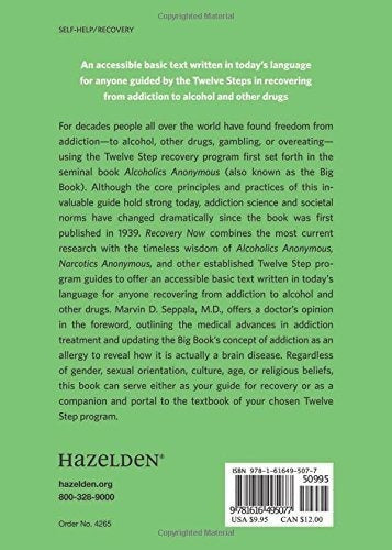 En tiempos de crisis, a menudo es aconsejable volver a lo básico. Para aquellos en recuperación durante la pandemia de coronavirus, este compañero actualizado en el viaje de doce pasos le trae lo básico a usted. Un texto básico accesible escrito en el idioma de hoy para cualquier persona guiada por los Doce Pasos en su recuperación de la adicción al alcohol y otras drogas. Durante décadas, personas de todo el mundo han encontrado liberarse de la adicción, ya sea al alcohol, otras drogas, juegos de azar o comer en exceso, utilizando el programa de recuperación de Doce Pasos que se presentó por primera vez en el libro seminal Alcohólicos Anónimos . Aunque los principios y prácticas centrales de esta guía invaluable se mantienen fuertes hoy en día, la ciencia de la adicción y las normas sociales han cambiado drásticamente desde que se publicó por primera vez en 1939. Recovery Nowcombina la investigación más reciente con la sabiduría intemporal de Alcohólicos Anónimos, Narcóticos Anónimos y otras guías establecidas del programa de Doce Pasos para ofrecer un texto básico accesible escrito en el idioma de hoy para cualquier persona que se recupere de la adicción al alcohol y otras drogas. Marvin D. Seppala, MD, ofrece una "opinión del médico" en el prólogo de Recovery Now, describiendo los avances médicos en el tratamiento de adicciones y actualizando el concepto de adicción del Libro Grande como una alergia para revelar cómo es realmente una enfermedad cerebral. Independientemente del género, la orientación sexual, la cultura,