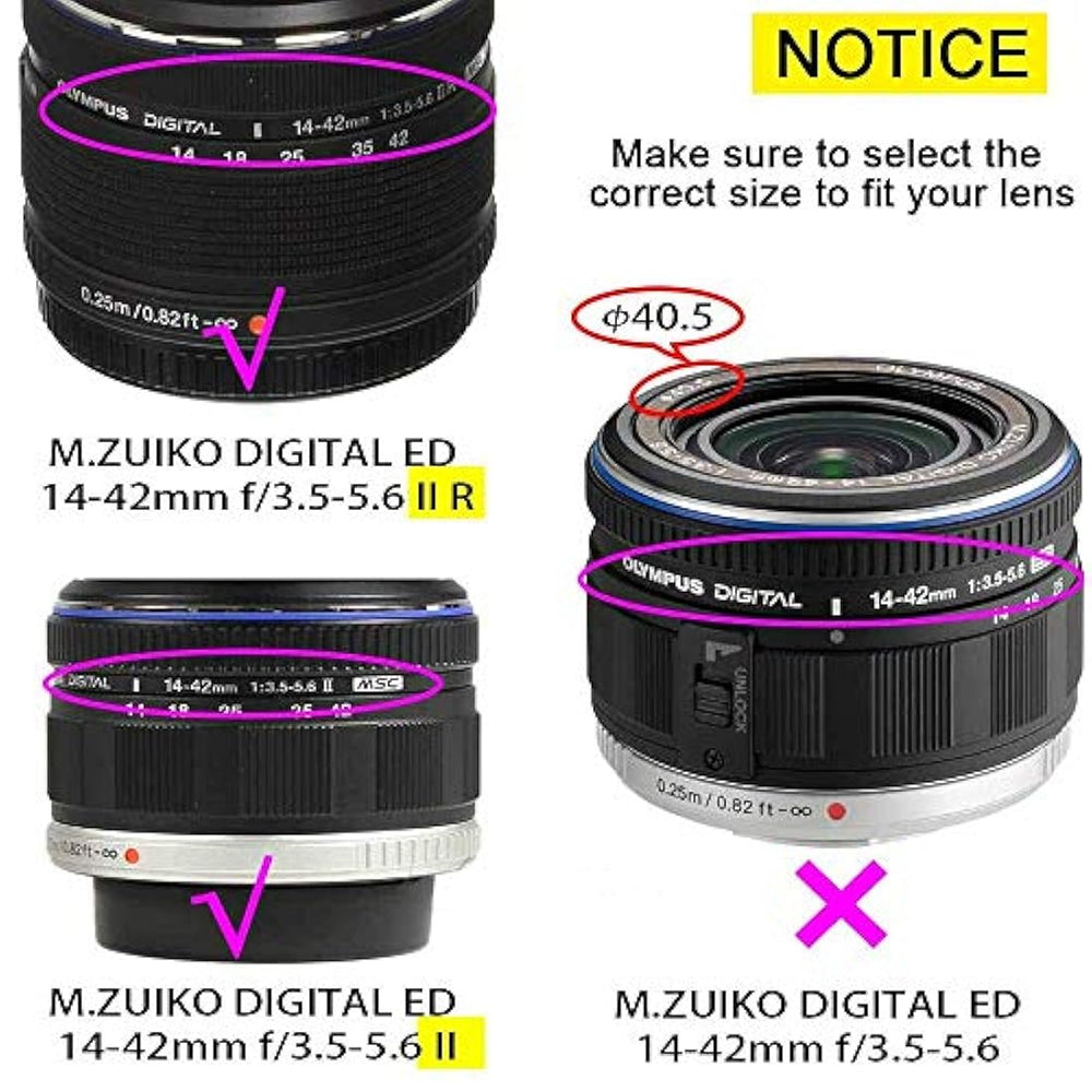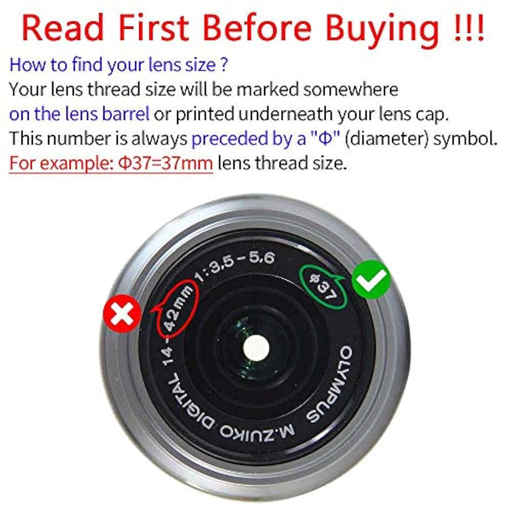 *** Características ***   . patible con Olympus M.ZUIKO DIGITAL ED 0.551-1.654 en f / 3.5-5.6 EZ, M.ZUIKO DIGITAL 0.551-1.654 en f / 3.5-5.6 II R, M.ZUIKO DIGITAL ED 0.551- 1.654 en f / 3.5-5.6 II? NO para Olympus M.ZUIKO DIGITAL ED 0.551-1.654 en f / 3.5-5.6 o ZUIKO 42DIGITAL ED mm f / 3.5-5.6? para Olympus OM-D E-M10 Mark III II E-PL9 E-PL8 E-PL7 E-PL6 E-PL3 E-PL2 E-P3 cámara digital. 2 tapas genéricas de lente de 1.457 en patibles con todas las lentes de 1.457 en (Ø37). Ten en cuenta que el tamaño de la tapa de la lente depende del modelo de la lente, no del modelo de la cámara.Esta tapa cuenta con un accesorio de lente de estilo pellizco frontal, que no sobresale más allá del diámetro de la tapa, a diferencia de una tapa de estilo agarre exterior, lo que hace que sea mucho más fácil de colocar y desmontar cuando se monta una capucha de lente. Pinza los lados de la tapa y colócala en su lugar. Incluye tapa de lente para evitar pérdidas. Material: plástico de alto impacto. Color: negro. Cmo encontrar el tamao de la lente El tamaño de la rosca de la lente está marcado en el lugar del barril de la lente o impreso debajo de la tapa de la lente. Este número siempre está precedido por un símbolo de (dimetro). Por ejemplo: 37 = 1.457 en tamao de rosca de la lente. Compatibilidad Compatible con Olympus M.ZUIKO DIGITAL ED 0.551-1.654in f / 3.5-5.6 EZ37mm Olympus M.ZUIKO DIGITAL 0.551-1.654in f / 3.5-5.6 II R - 1.457in Olympus M.ZUIKO DIGITAL ED 0.551-1.654in f / 3.5-5.6 II37mm Cmara digital Olympus OM-D E-M10 Mark III, E-M10 Mark II, E-M10, E-M5, E-PL9 E-PL8 E-PL7 E-PL6 E-PL3 E-PL2 E-P3. No es patible con Olympus M.ZUIKO DIGITAL ED 0.551-1.654in f / 3.5-5.6 lente: 1.594in Olympus ZUIKO DIGITAL ED 0.551-1.654in f / 3.5-5.6 lente58mm Pngase en contacto con nosotros para confirmar el tamaño de su lente si no está seguro sobre el tamaño de su lente Proteger la lente de araazos, humedad, polvo y huellas dactilares cuando la lente no está en uso. Contenido del envo: 2 tapas de lente de 1.457in. 2 protectores de lente. Acerca de nuestros servicios: Ofrecemos 3 meses de garaje de en caso de que usted no esté 100% satisfecho y desea devolver el producto por cualquier razón. Si tienes alguna pregunta, por favor envuelve un mensaje, y te responderemos en 24 horas. Si no está satisfecho, antes de dejar un entario negativo / neutral, por favor envie un mensaje para indicar un reembolso pleto o un nuevo reemplazo. Si está satisfecho con nuestros productos, no olvides dejar un entario positivo, te agradeceremos tu apoyo. Gracias por venir a nuestra tienda y disfrutar de sus pras.