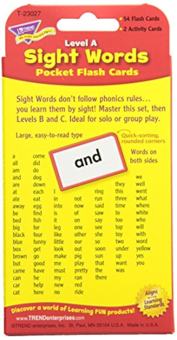 Tarjetas flash de bolsillo, nivel A de visión de palabras