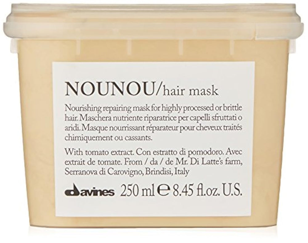 *** Características *** La mascarilla nutritiva NOUNOU / para el cabello proporciona una reparación intensa para el cabello altamente procesado. El extracto de tomate Fiaschetto hidrata, suaviza y alivia profundamente el cabello y el cuero cabelludo dañados.