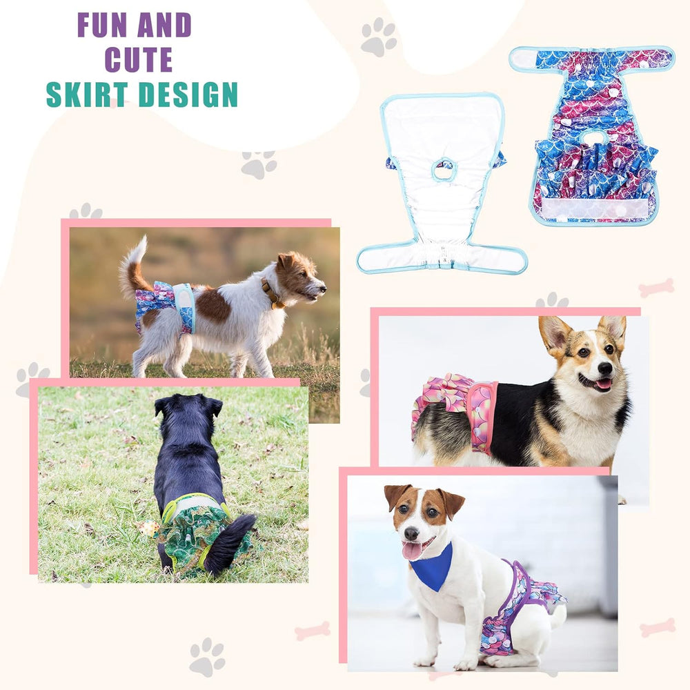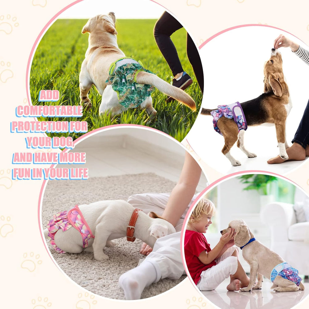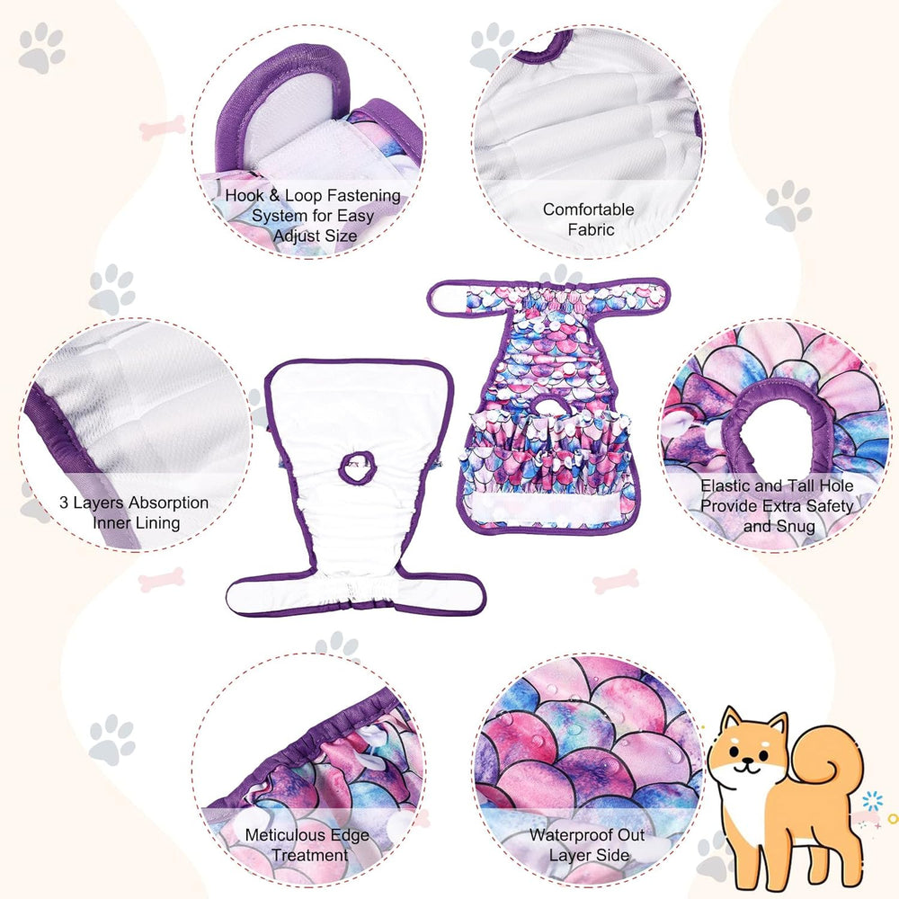Paquete de 4 pañales para perras, pañales lavables para perras (M, sirena)