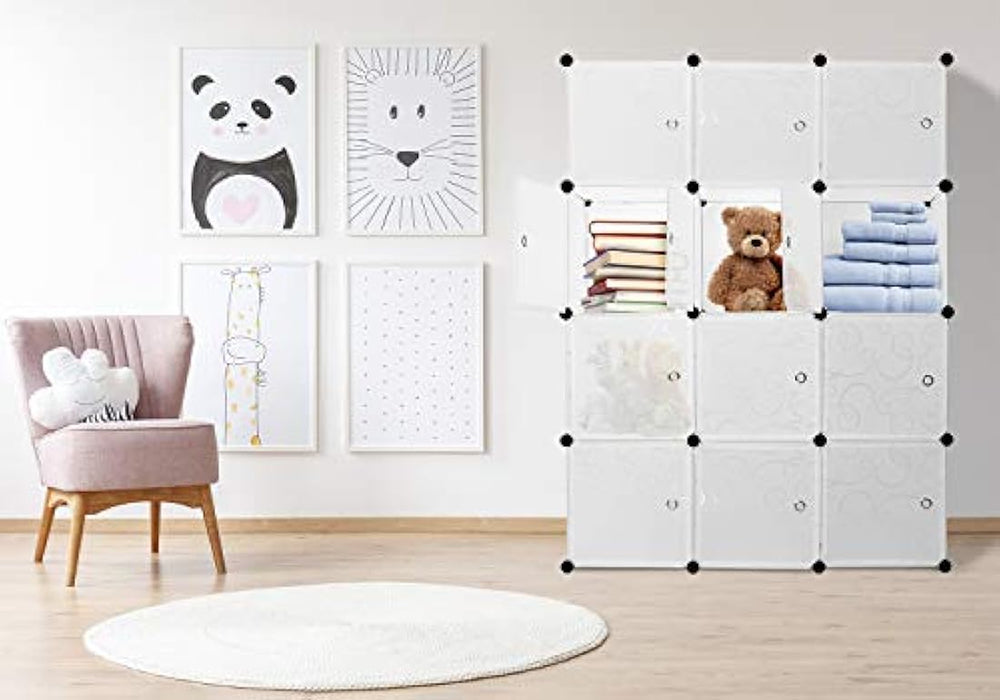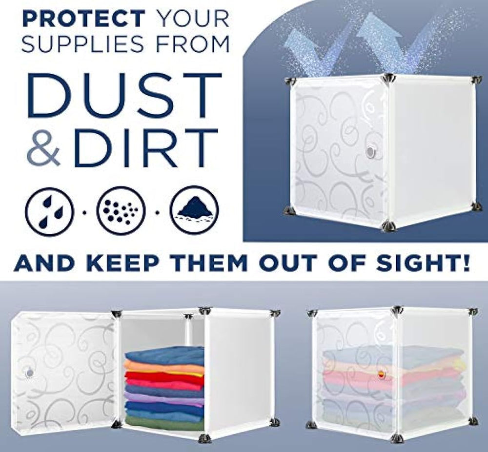 *** Características *** Los cubos de almacenamiento modulares ayudan a organizar tu espacio. 12 cubos de almacenamiento apilables proporcionan un gran espacio para almacenar ropa, zapatos, juguetes, bolsos, etc. Medidas: nuestros cubos de 14 pulgadas son más grandes que la competencia (12 pulgadas) y se pueden apilar en múltiples formas para adaptarse a tus necesidades de espacio. Fácil de montar: diseño modular simple hace que sea fácil de instalar y desmontar. Toda la unidad se puede en cuestión de minutos (ver nuestro vídeo de instrucciones a la izquierda). Incluye instrucciones paso a paso y martillo. Multiusos: utiliza los cubos organizadores en pasillos, lavanderías, habitaciones de niños, oficina o garaje. Las puertas proporcionan protección adicional contra el polvo, la suciedad y la luz solar. Nota: algunas configuraciones individuales pueden requerir una compra por separado de conectores y paneles adicionales. Fácil de limpiar: hecho de plástico PP duradero, el material es impermeable, a prueba de humedad, antimoho y antipolvo. Simplemente límpialo con un paño húmedo para la limpieza diaria. ¡Trabajarlo! Cubos de almacenamiento modulares