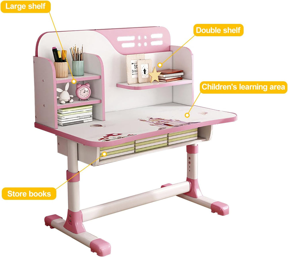 Escritorio y Silla Infantil Ajustable con Cajón de Almacenaje