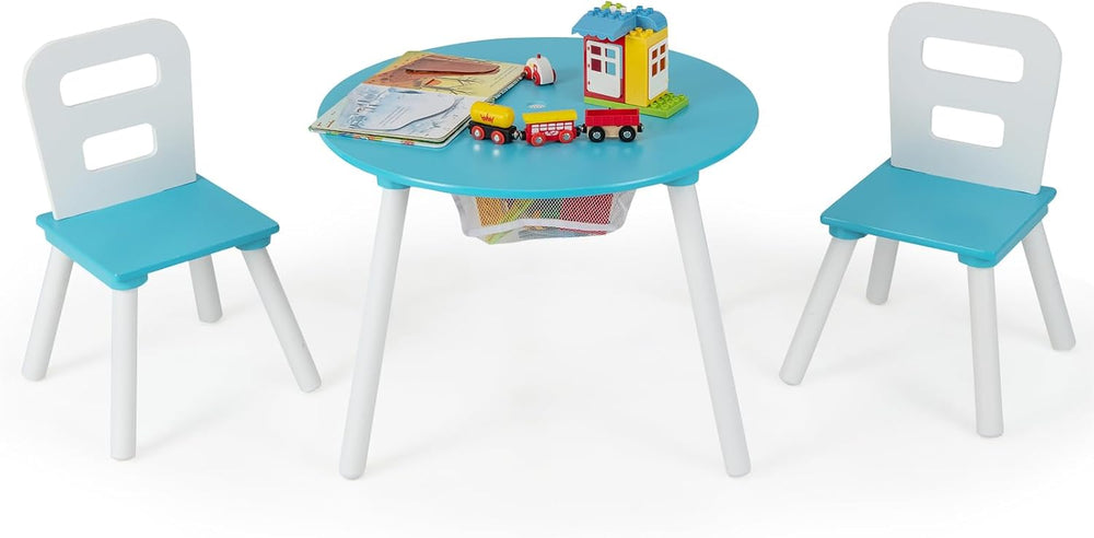 Color Azul Costzon Talla 23.5” x 23.5” x 17.5” (L X W X H) Dimensiones del artículo LxWxH 23,5 x 23,5 x 17,5 pulgadas Instrucciones de cuidado del producto Limpieza con un paño húmedo Peso del artículo 17 Libras Estilo Moderno Se requiere ensamblado Sí Forma Redonda Atractivo juego de 3 piezas para niños: el juego de mesa y silla para niños incluye 2 sillas y 1 mesa redo que es lo suficientemente grande para crear un rincón para niños en cualquier habitación. Este juego de muebles acto y elegante es ideal para la habitación de los ni sala de es sala de jue etc. Es el regalo perfecto para niños de 3 a 7 años. Práctica bolsa de almacenamiento central: en el medio de la m hay una bolsa de almacenamiento de malla para que los niños almacenen sus juguetes y aperitivos para mantener la mesa limpia. Las muescas en el círculo evitan pellizcar las manos pequeñas de los niños. Ayuda a mejorar la conciencia de los niños sobre la organización y la responsabilidad. Material seguro y estructura estable: Hecho de marco de madera resiste la mesa y las sillas son insípidas y se pueden utilizar durante mucho tiempo. Están certificados por ASTM y CPSIA para proteger la salud de los niños. Las patas estables de madera maciza garantizan que no se agite cuando los niños se sientan en ella. La capacidad máxima de peso es de 110 libras. Diseño acogedor y ergonómico: la silla con respaldo puede apoyar eficazmente la columna vertebral del niño y ayudar a desarrollar una buena postura sentada. Los niños pueden disfrutar de su propio espacio para l escri r y ju mejorando así su imaginación y creatividad. Y la superficie lisa y los bordes redondeados protegen la delicada piel de los niños. Fácil montaje y mantenimiento: viene con instrucciones detalla la instalación de muebles no le costará demasiado tiempo. Y las manchas en la superficie impermeable y resistente a los arañazos se pueden limpiar con un paño húmedo para el mantenimiento diario. El peso ligero permite a los niños mover las sillas ellos mismos para desarrollar la independencia.