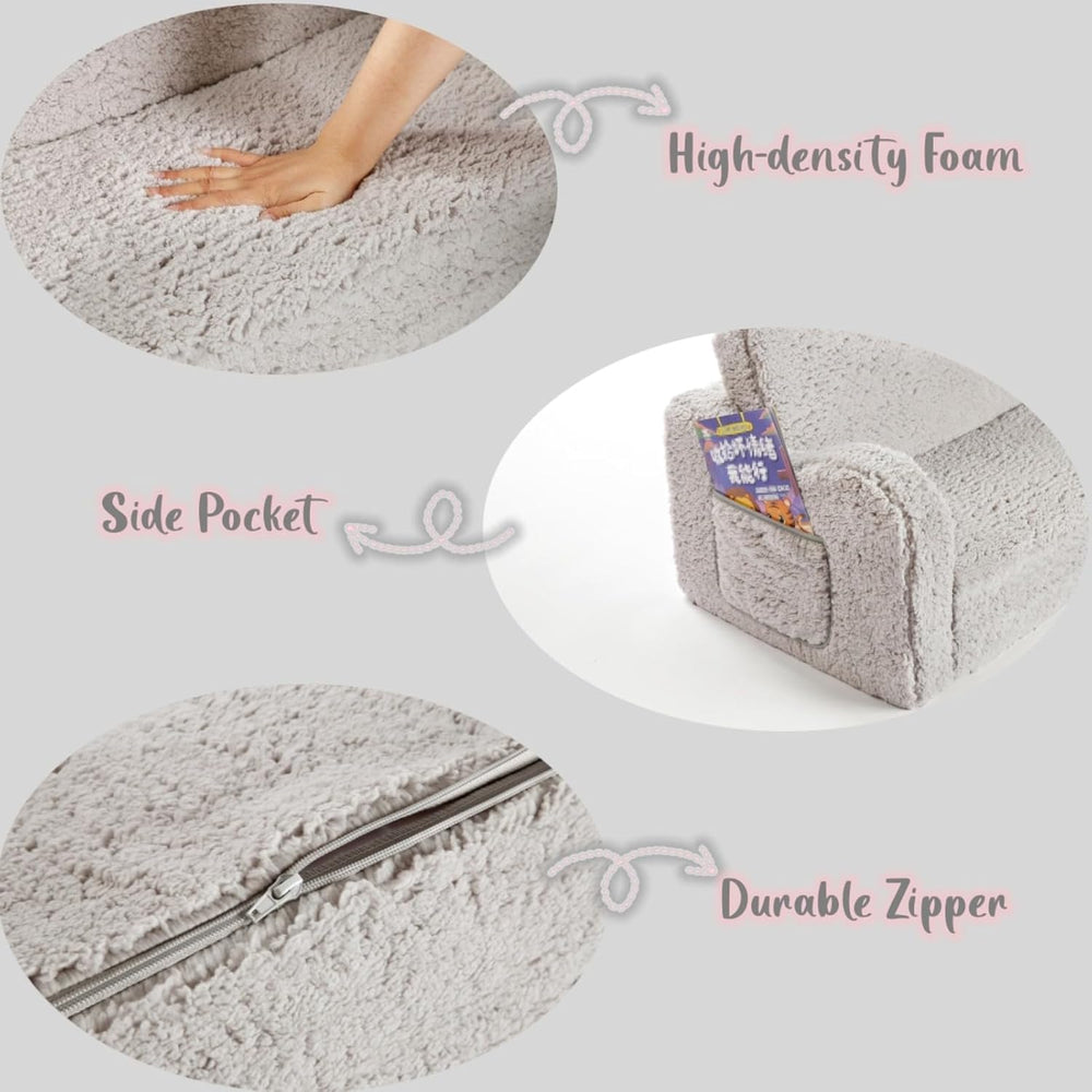 MOMCAYWEX Color Gris Dimensiones del producto 17"prof. x 30"an. x 17"al. pulgadas Estilo trasero Medium Atrás Características especiales Silla plegable 2 e sofá convertible a tumb regalo ideal para niños Material Espuma de alta densi poliéster Sherpa Peso del artículo 4,1 Libras Material del armazón Madera Tipo de material del asiento Espuma de alta densidad Sobre este artículo Diseño abierto del sofá para niños: las sillas para niños son perfectas para que los niños se sientan y lean o vean sus dibujos animados favoritos. Durante la sie este sofá se pliega en una cómoda almohadilla para siesta. Diseño apto para niños: la cómoda silla para niños es ligera para que los niños se muevan a cualquier habitación que quie ya sea leye jugando videojue viendo la televisión o simplemente relajánd los niños pueden jugar con este sofá quieran. Seguridad y fiabilidad de la silla Sherpa para niños: la silla de sofá para niños está hecha de poliéster Sherpa duradero y suave y está rellena con espuma premium para apoyar el cuerpo de los niños. El sofá está diseñado pensando en la seguri ya que no hay esquinas afiladas ni bordes duros. Lavable a máquina: la funda extraíble con cremallera se puede quitar y lavar fácilmente en la máquina en agua f lo que hace que el mantenimiento sea muy fácil.