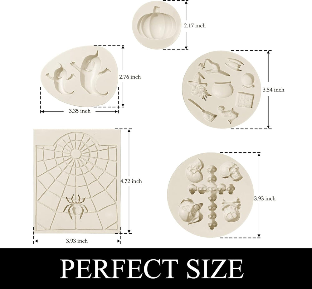 Moldes de Fondant Halloween, 5 Piezas, Silicona para Decorar