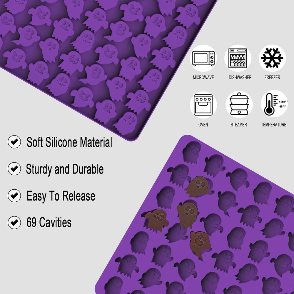 Moldes de Silicona Halloween, 69 Cavidades, Mini Fantasmas