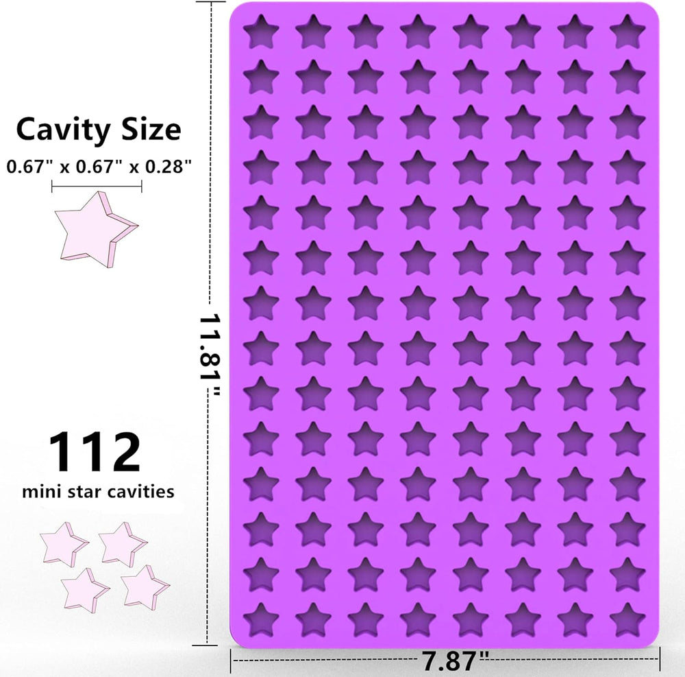 Acerca de este artí ? 112 cavidades en forma de estrella? Los moldes de silicona para mini estrellas tienen un tamaño perfe tamaño de la cavidad: 0.67" x 0.67" x 0. lo que te permite crear 112 golosinas y manualidades en forma de estrella a la vez para cualquier ocasión. ? Funciona perfectamente? El material de silicona flexible y la superficie lisa de los moldes de estrella hacen que sea fácil liberar tus golosinas sin que se peguen o se rom permitiendo crear creaciones perfectas en forma de estrella cada vez. Viene con una espátula que facilita la colocación de los dulces. ? Bien hecho? Producto increíble. Los pequeños moldes de silicona para estrellas están hechos de silicona de grado alimenticio de alta cali garantizando experiencias de horneado saludables. ?Resistente al calor y al frío? Soporta temperaturas que van desde -40°F a 446°F (-40°C a 230 los moldes de silicona para gomitas en forma de estrella se pueden utilizar en hor congelado microondas y lavavajillas. ?Múltiples aplicaciones? Estos moldes de silicona para mini estrellas son perfectos para crear adorables golosi chocola caramelos y más en forma de estre añadiendo un toque de encanto celestial a tus creaciones. Estos moldes de estrellas son muy divertidos de hacer y regalar. ? Ver más detalles del producto Información del producto : sofliym Color: morado mini estrella Material: Silicona Dimensiones del artí L x W x H: 7.87 x 0.3 x 11.81 pulgadas Peso del artí : 5.28 onzas Número de piezas: 1 Material libre de BPA Fabricante: sofliym Dimensiones del producto: 7.87 x 0.3 x 11.81 pulgadas Peso del artí : 5.3 onzas C393DFNF País de origen: China Número de modelo del artí : mini moldes de estrella Los moldes de silicona Mini Star de sofliym vienen con una espátula para horn hacer chocolate y manualidades. Ideal para crear deliciosas y divertidas formas de estrella. Con una alta calificación de 4.6 sobre 5 estrellas y 774 opiniones de clien estos moldes son muy populares en la categoría de moldes de chocolate. ¡Aprovecha esta oportunidad y dale un toque especial a tus preparaciones!