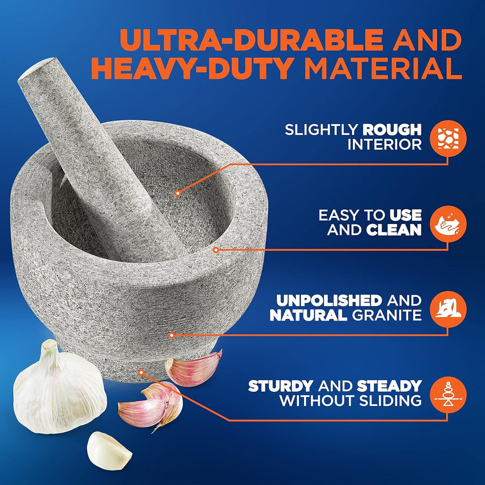 Sobre este artí Esto se ajusta a tu  . P.when("ReplacementPartsBulletLoader").execute(función(módulo){ módulo.initializeDPX(); }) Imprescindible para tu cocina: a diferencia de los molinillos o trituradores eléctri el uso de un mortero y mortero saca todos los sabores y características de fragancia de los ingredien lo que te permite gestionar aún más su textura y crear excelentes recetas sin trozos. Bueno para todo el uso: ideal para pulverizar nue semil ajo y hacer aderezos caseros para ensala salsas y condimentos mostaza fre guacam pe sa chutneys y mucho más. También es ideal para uso farmacéutico y boticario. Hecho para durar: construido a partir de granito natu este juego de mortero y mortero seguramente demostrará su longevidad para un uso prolongado. También tiene un interior ligeramente rug lo que te permite moler mejor tus ingredientes. Fácil de usar y limpiar: con un áspero inter este juego de mortero y mortero es mucho más eficiente para moler tus ingredien también estable y resistente. También es fácil de limp ya que solo necesitarás lavarlo con agua sin necesidad de jabón. Elegante para la encimera: la piedra sólida brilla con la elegancia del viejo mundo en cualquier encimera. En tu isla de cocina o rincón de esqu r ndamos encarecidamente colocar esta pieza rústica en una posición prominente cerca de tu estante de especias o taza de r ensas. Características: granito natural y sin pulir – Material ultra duradero y resistente – Resistente y estable sin deslizarse – Perfecto para ingredientes húmedos o secos – Fácil de usar y limpiar – Interior ligeramente áspero – Lavar con a sin uso de jabón – Capacidad para hasta 2 tazas de ingredientes – Fácil de triturar y machacar alimen hier especias y otros sabores esenciales Contenido de la caja: – Juego de mortero y mortero Especificaciones técnicas: - Materiales de construcción: granito natural. Capacidad: capacidad para hasta 2 tazas. Dimensiones del producto (largo x ancho x alto): 5,9 x 5,9 x 5,9 pulg.