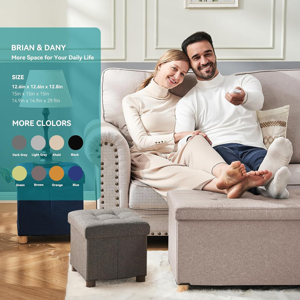 Ottomán Pequeño Plegable con Almacenamiento y Patas de Madera