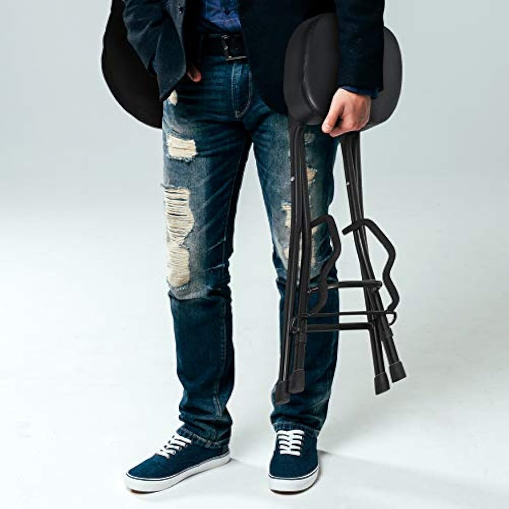 de guitarra integrado: el asiento de guitarra profesional proporciona un lugar para sentarse cómodamente para ti y tu guitarra. Está equipado con de guitarra integrado co s acolchados de espuma EVA para adaptarse a todos los tipos de guitarr guitarras acústi eléctricas y bajos Práctico reposapiés: la silla de guitarra bajo cuenta con una barra transversal que proporciona un reposapiés elevado para un rendimiento más cómodo. Este taburete también cuenta con patas de goma antideslizantes para mantenerte conectado a tie as para mayor estabilidad Asiento y respaldo acolchados: el taburete y de guitarra proporcionan un apoyo suave con un cojín acolchado duradero y grueso y respaldo ergonómico extraíble. Te permite plegar de guitarra y deslizar tu guitarra al acab brazos de goma y descanso Diseño plegable: el taburete plegable para guitarristas cuenta con un pin de liberación rápida para un almacenamiento acto. El diseño plegable hace que sea fácil de empacar y almacenar. Para zonas de almacenamiento más estrec simplemente retira el respaldo para romper el asiento aún más Capacidad máxima de 300 libras: el taburete de guitarra está hecho de acero y cuenta con una capacidad de peso de 300 libras con altura perfecta para cualquier músico. Cuenta con una altura de asiento de 27.17 pulgadas y un tamaño de cojín de asiento de 13.78 x 10.24 pulgadas. Dimensiones totales del producto: 1.73 x 1.38 x 42.52 pulgadas.