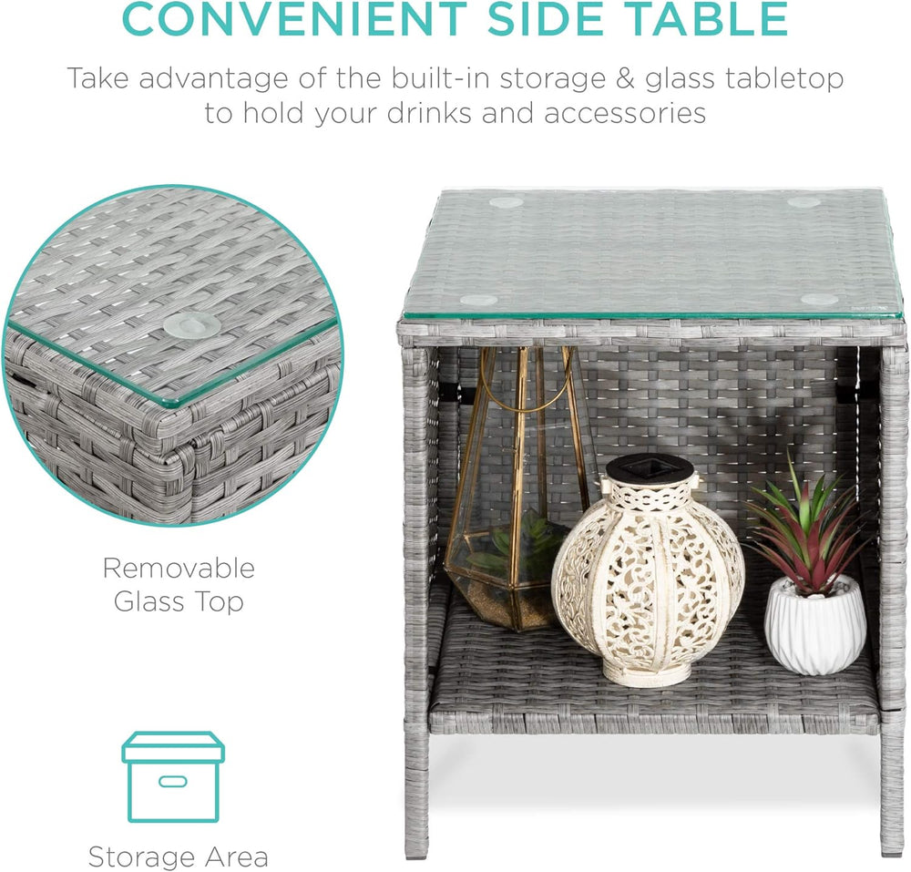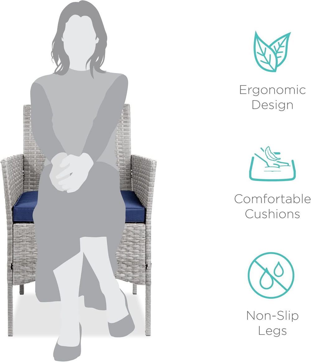 Best Choice Products Juego de 3 piezas de mimbre para exteriores, muebles de patio que ahorran espacio para patio, jardín con 2 sillas, 2 cojines, mesa de almacenamiento lateral, gris/azul marino está agotado y se enviará tan pronto como vuelva a estar disponible.